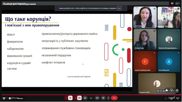 У своєму виступі пані Олена щиро подякувала представникам Офісу доброчесності Національного агентства з питань запобігання корупції та всім учасникам проєкту Прозорі університети за проведення, назвавши захід мега крутим і надзвичайно важливим для студентської молоді.