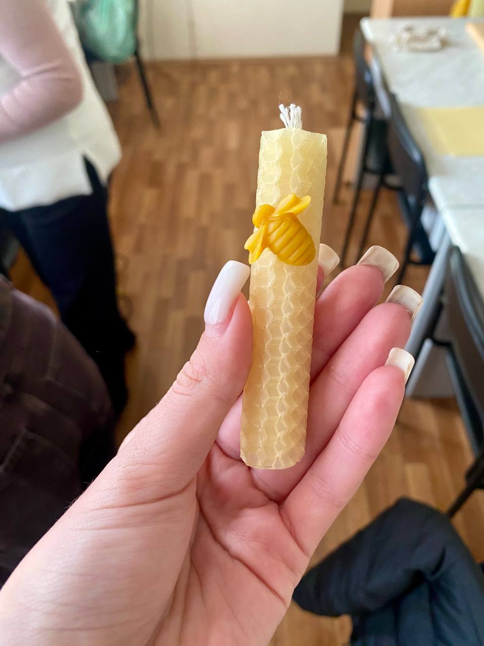Однією з найприємніших частин нашої роботи стало створення свічок з вощини. Ми навчились: