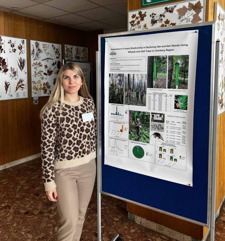 Під час заходу Юлія представила постер “Assessment of Insect Biodiversity in Declining Oak and Ash Stands Using Witasek and UAS Traps in the Cherkasy Region”, у якому були висвітлені результати досліджень з оцінки біорізноманіття комах у всихаючих деревостанах дуба та ясена в Черкаській області.