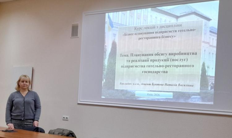 9 квітня 2026 року відбулася відкрита лекція доцента кафедри готельно-ресторанної справи та туризму Наталії Бунтової з дисципліни «Бізнес-планування діяльності підприємств готельно-рестораного господарства» на тему «Планування обсягу виробництва та реалізації продукції (послуг) підприємств готельно-ресторанного господарства» для студентів 4 курсу спеціальності «Готельно-ресторанна справа» економічного факультету.