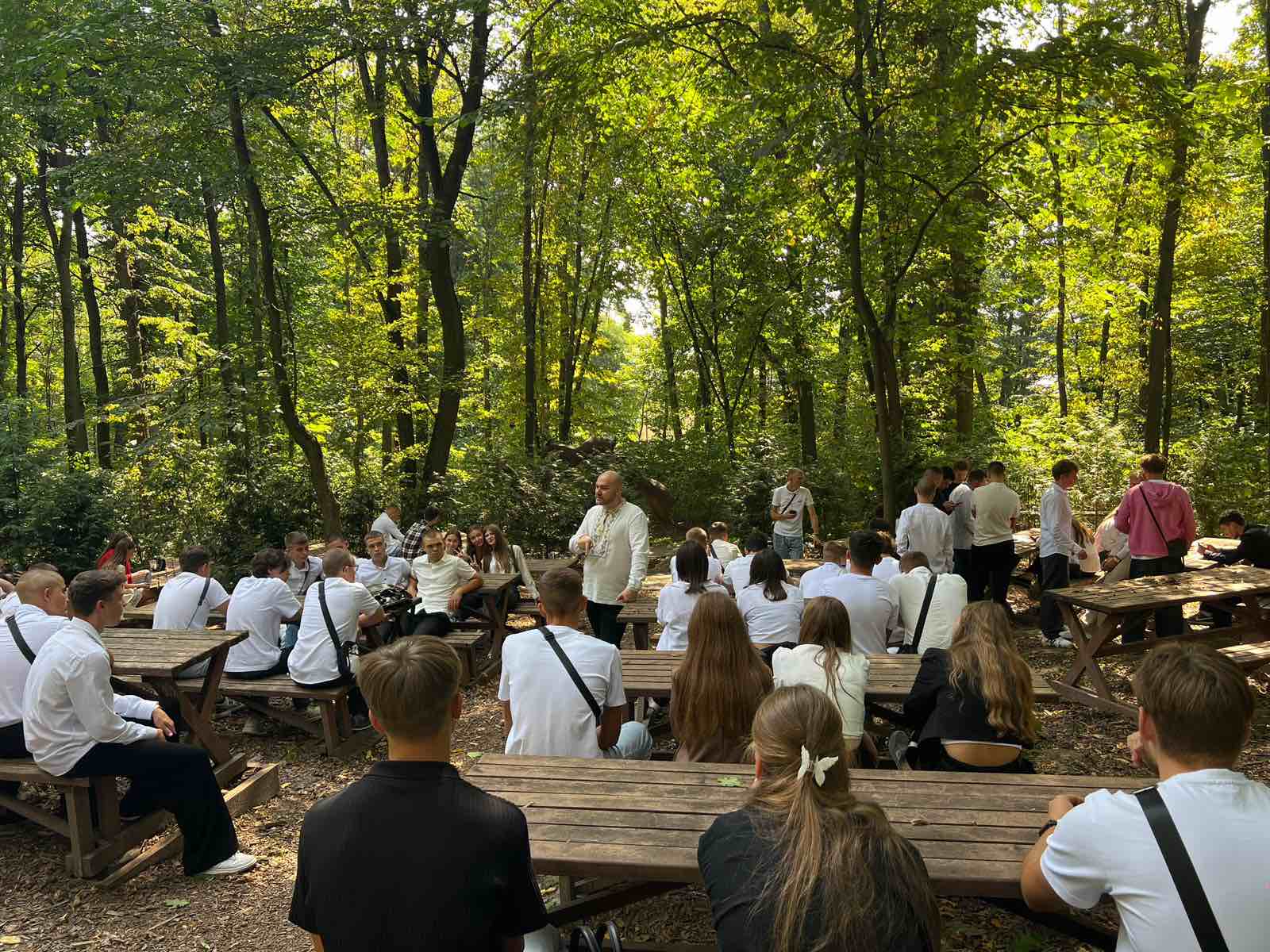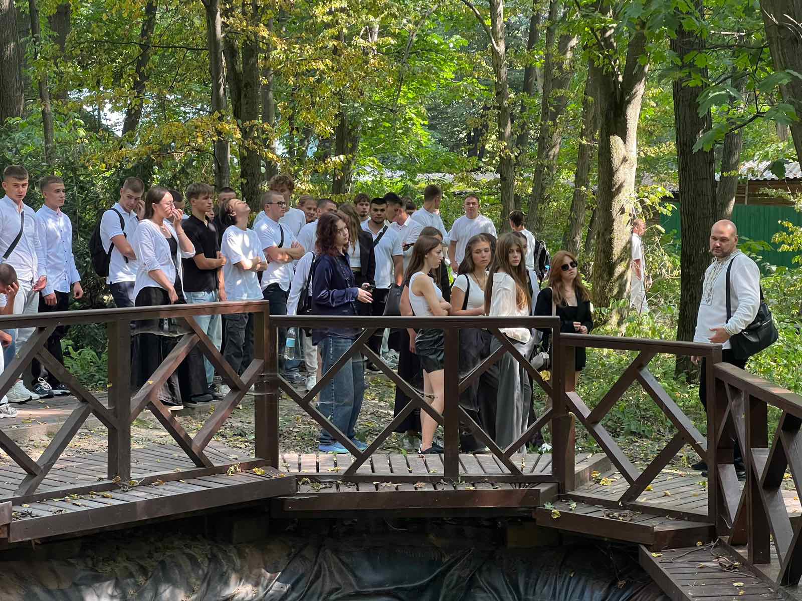 Особливе враження на першокурсників справило багатство флори. Вони побачили як звичні для нашої місцевості дерева й квіти, так і рідкісні екзотичні види - зокрема гінкго дволопатеве та ліани. Атмосфера саду посилювалася завдяки різьбленим дерев’яним фігурам казкових персонажів і лісових жителів, гігантським скульптурам мамонтів і динозаврів, декоративним водоймам та затишним альтанкам. Серед цієї зеленої оази розташувався еко-клас, у якому студенти щиро зізналися, що мріють провести хоча б одне заняття.