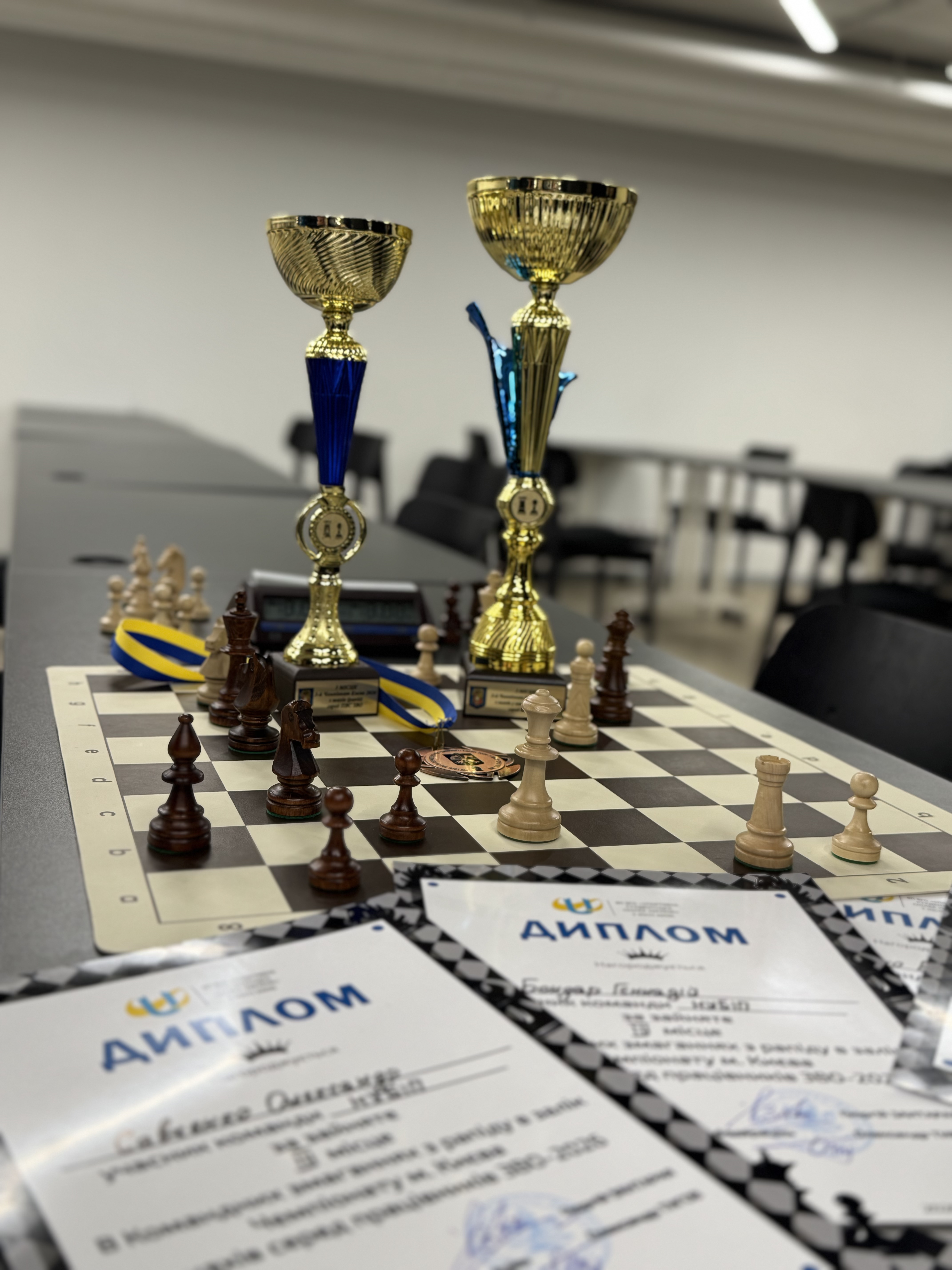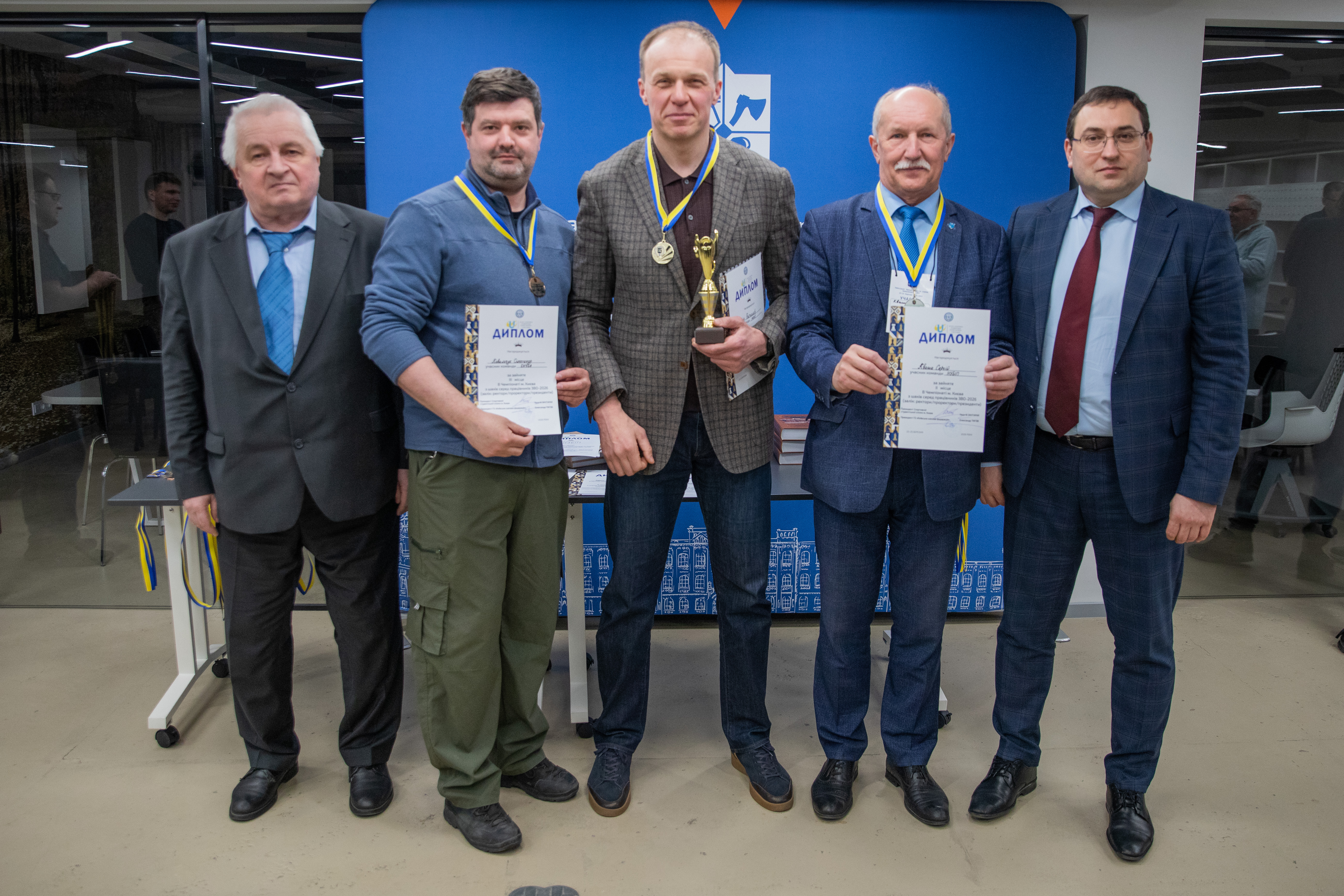 За результатами першого ігрового дня наша команда здобула бронзовий кубок шахового турніру в форматі рапід. За результатами двох ігрових днів, тобто у чемпіонаті, команда університету виборола також бронзу чемпіонату столиці України. В індивідуальних змаганнях серед проректорів, показавши максимальну концентрацію у грі, срібло виборов проректор Сергій КВАША.
