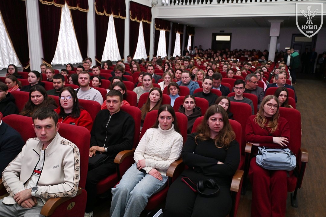 18 березня 2026 року у Національному університеті біоресурсів і природокористування України відбулася зустріч ректора університету Вадима ТКАЧУКА зі студентським активом. Під час виступу очільник університету підняв актуальні питання безпеки в умовах воєнного стану, інформаційної та цифрової гігієни, академічної доброчесності, студентської дисципліни, а також роль молоді у формуванні позитивного іміджу університету.