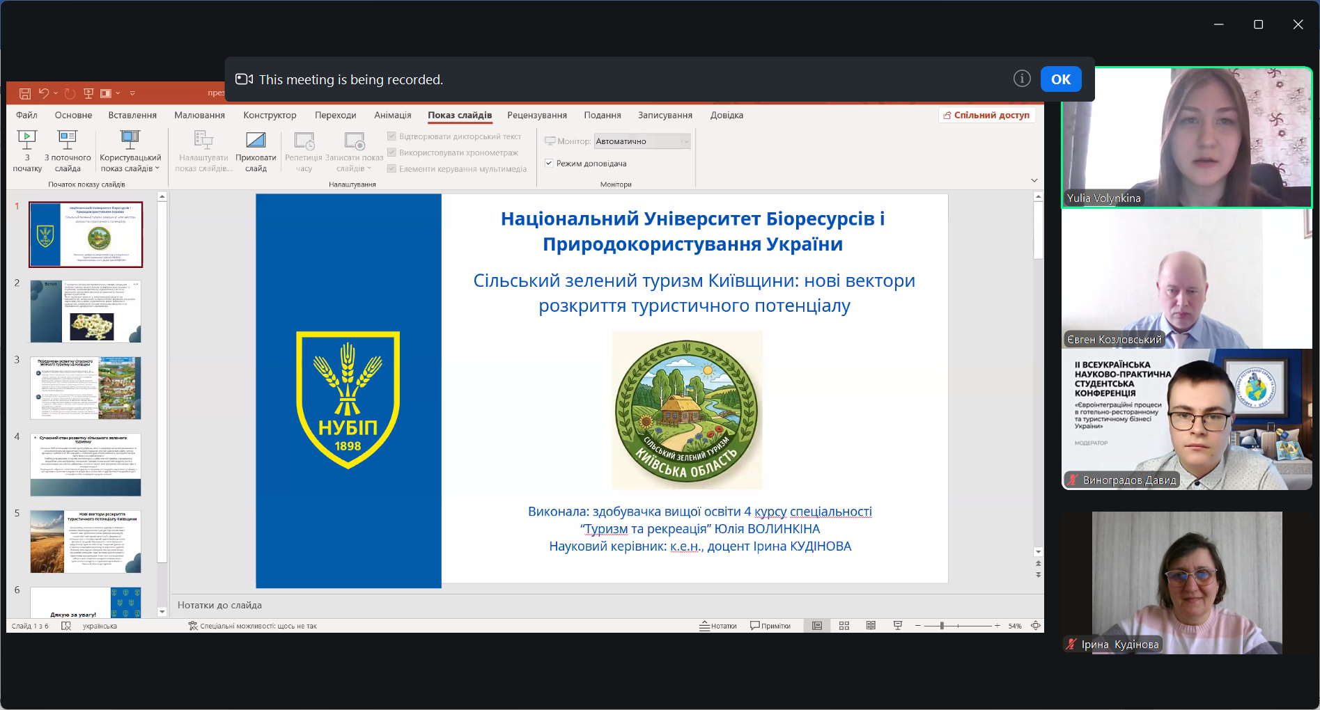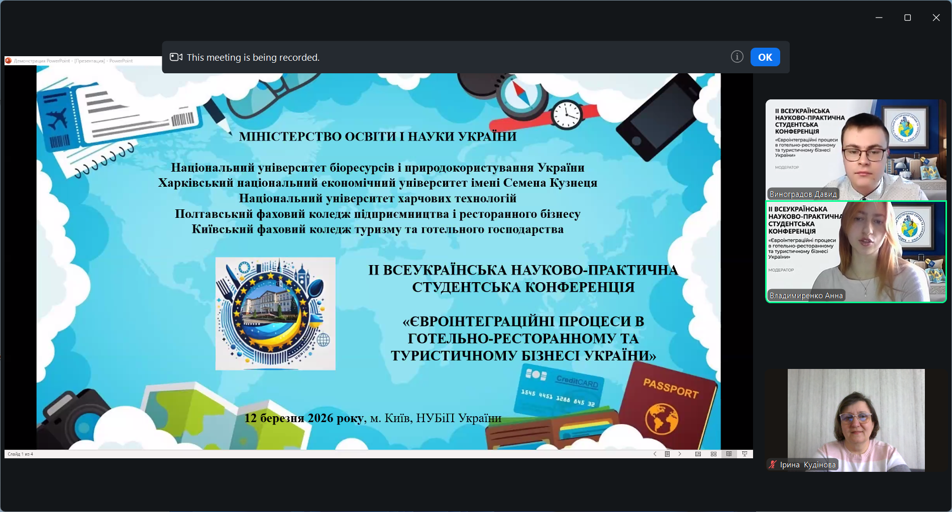 12 березня 2026 року на базі кафедри готельно-ресторанної справи та туризму економічного факультету Національного університету біоресурсів і природокористування України відбулася ІІ Всеукраїнська студентська науково-практична конференція «Євроінтеграційні процеси в готельно-ресторанному та туристичному бізнесі України».