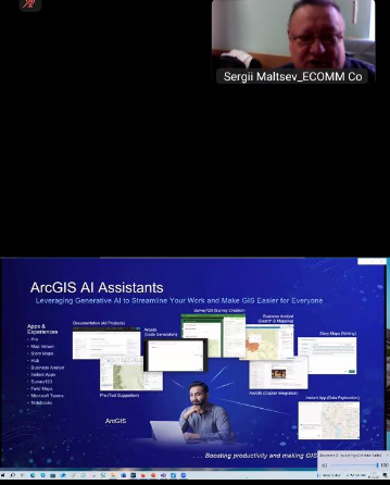 Сергій МАЛЬЦЕВ – заступник директора з впровадження ГІС проектів ECOMM Co на тему ARCGIS AI ASSISTANT. ШТУЧНИЙ ІНТЕЛЕКТ НА СЛУЖБІ У ГІС-АНАЛІТИКА