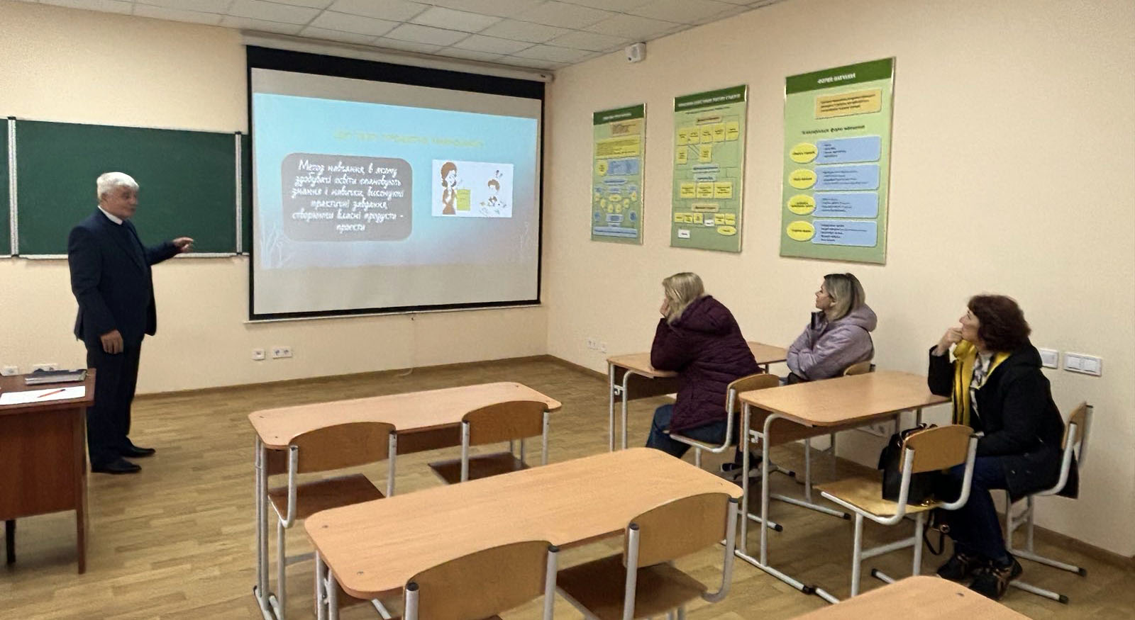 - Майстер-клас від доцента кафедри Василя БАЗЕЛЮКА з управлінської теми «Проєктне навчання» та «Управлінська діяльність керівника закладу освіти в умовах змін».