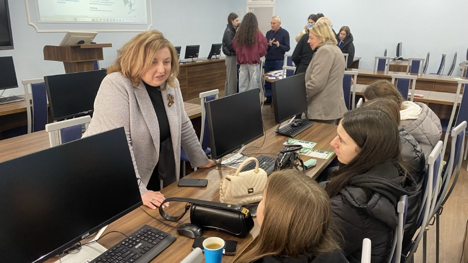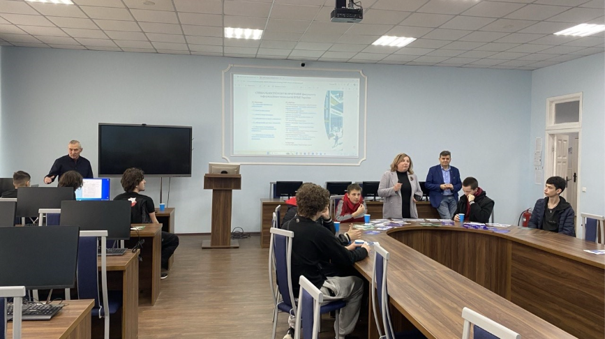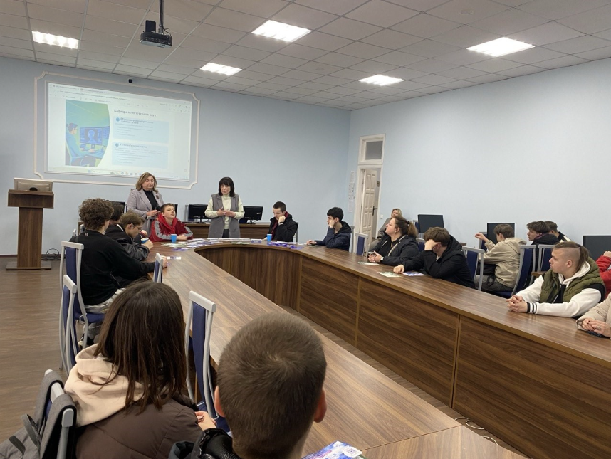 Після екскурсії учні ліцею 309 мали нагоду повернутися до аудиторії, де більш детально ознайомилися зі спеціальністю С1 «Економіка та міжнародні відносини», зокрема з освітніми програмами «Економічна кібернетика» та «Цифрова економіка», які реалізуються на базі факультету інформаційних технологій (деталі: