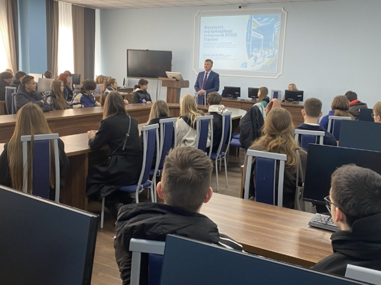 07 квітня 2026 року факультет інформаційних технологій НУБіП України вкотре відчинив двері для майбутніх абітурієнтів — у рамках університетського Дня відкритих дверей факультет прийняв понад 100 учнів старших класів із Києва, Київської області та сусідніх регіонів. Цього разу до нас завітали представники одразу кількох десятків закладів освіти: Ліцею №309 м. Києва (профільні класи з математики та ІТ за сприяння кафедри економічної кібернетики, які отримали комплексний візит по декількох факультетах та Ботанічному саду), Бориспільського ліцею імені Юрія Головатого, Ліцею «Наукова зміна» м. Києва, Ліцею 261 м. Києва, Ліцею №1 м. Яготина, Ліцею №293 з поглибленим вивченням природничих наук, Школи №292 імені гетьмана Івана Мазепи, Спеціалізованої школи №301 імені Ярослава Мудрого, Немішаєвського ліцею №1 та №2, Київського Палацу дітей та юнацтва (відділ STEM-освіти), Ірпінського академічного ліцею НУБіП, Спеціалізованої школи №91 з поглибленим вивченням інформатики, Ліцею №116, Ліцею №15, Школи №186, Школи №36 імені С. П. Корольова, Ліцею №241 «Голосіївський», Спеціалізованої школи №52 з поглибленим вивченням інформаційних технологій, Ліцею №221, Козинського ліцею Обухівського району та інших.