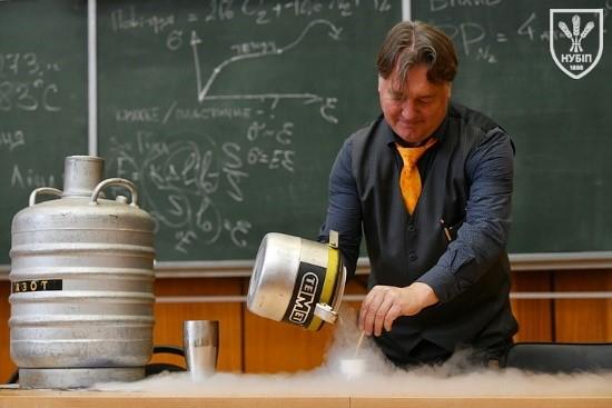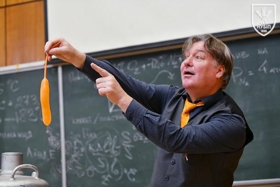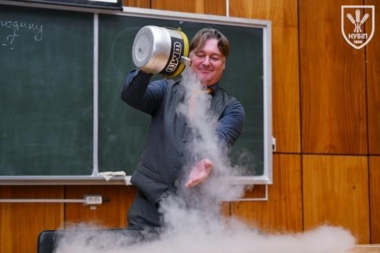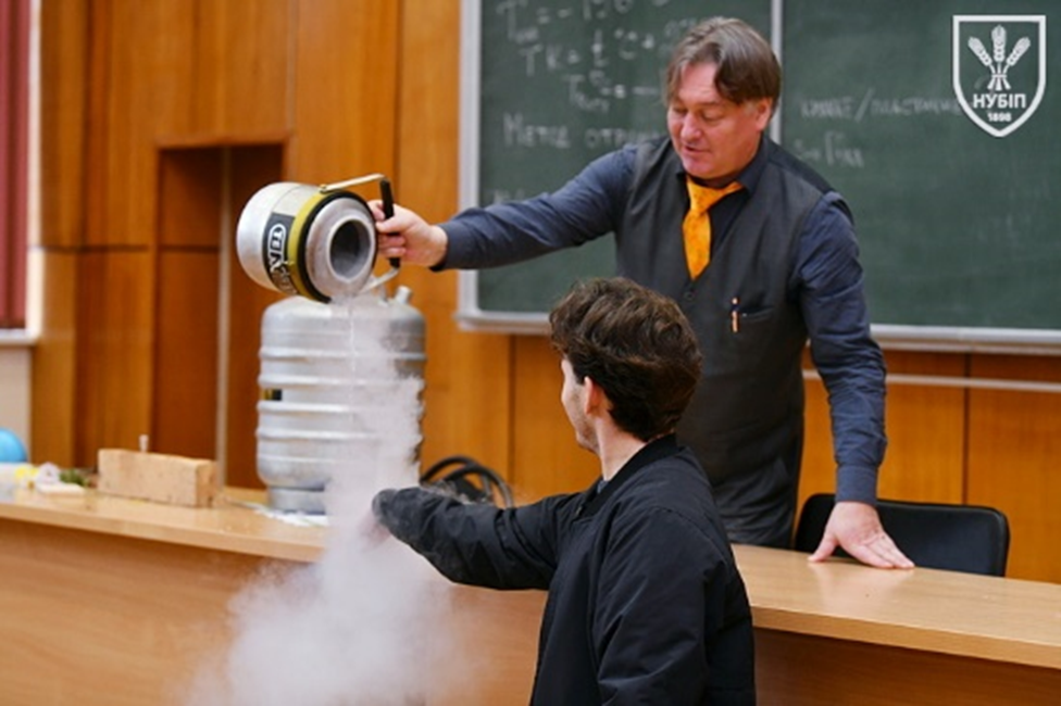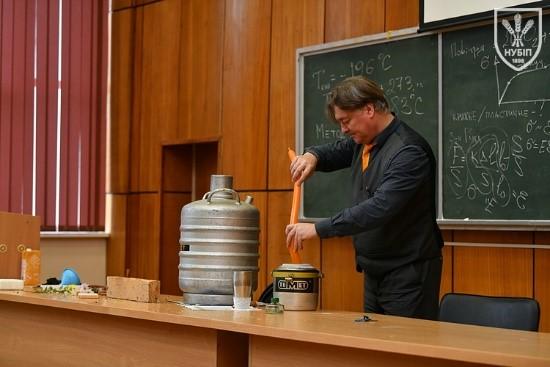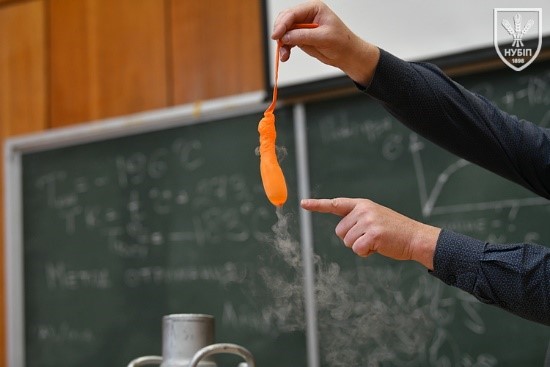 Демонстраційне заняття провів доцент Ярослав ГУМЕНЮК, який у доступній та захопливій формі продемонстрував серію експериментів із використанням рідкого азоту та інших речовин, наочно показавши зміну властивостей матеріалів за умов наднизьких температур. Такий формат дозволив майбутнім вступникам не лише спостерігати, а й усвідомити, що фізика є фундаментом інженерних рішень, а наука – це цікавий і творчий процес.