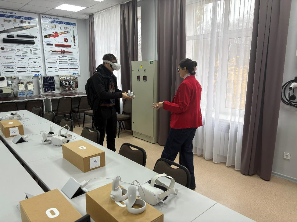 Знайомство з освітньою програмою «Інжиніринг електроенергетичних систем з відновлювальними джерелами» (спеціальність G3 «Електрична інженерія») розпочалося з презентації від завідувача кафедри Євгена АНТИПОВА, доцента Володимира ПАВЛЕНКА та ст. викладача Вікторії ЛИКТЕЙ. У лабораторії «Монтажу електрообладнання і систем керування» для гостей було проведено VR-тренінг, під час якого учасники виконували оперативні перемикання на віртуальній підстанції 110/35/10 кВ для виведення в ремонт трансформатора. Відвідувачі відзначили практичність і наочність VR-технологій, які дозволяють відпрацьовувати професійні навички в умовах, максимально наближених до реальних.