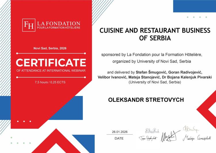 Експертні виступи представників Університету Нові-Саду та практиків у сферах гастрономії, менеджменту гостинності й маркетингу наповнили вебінар прикладними кейсами та актуальними професійними інсайтами.