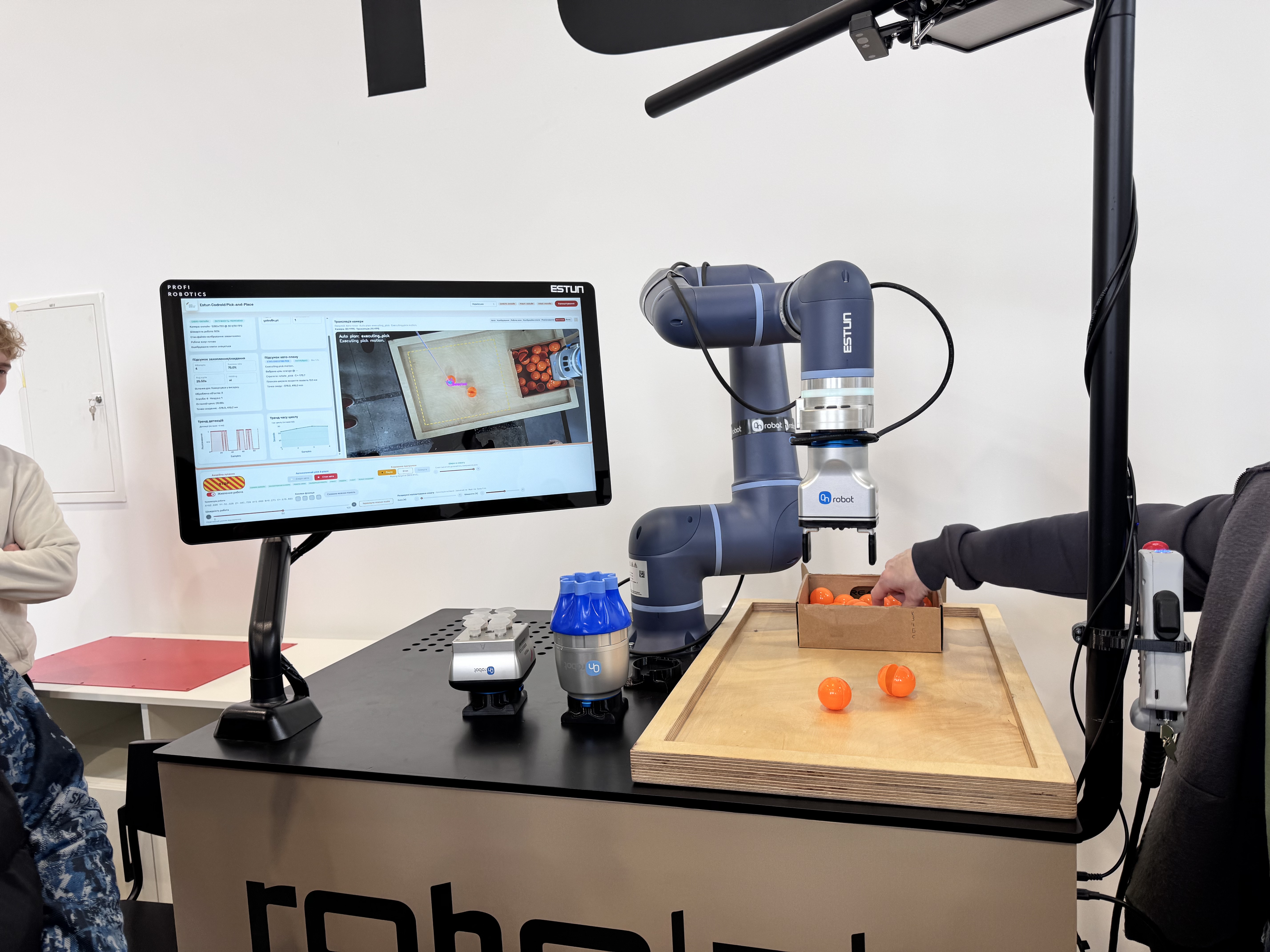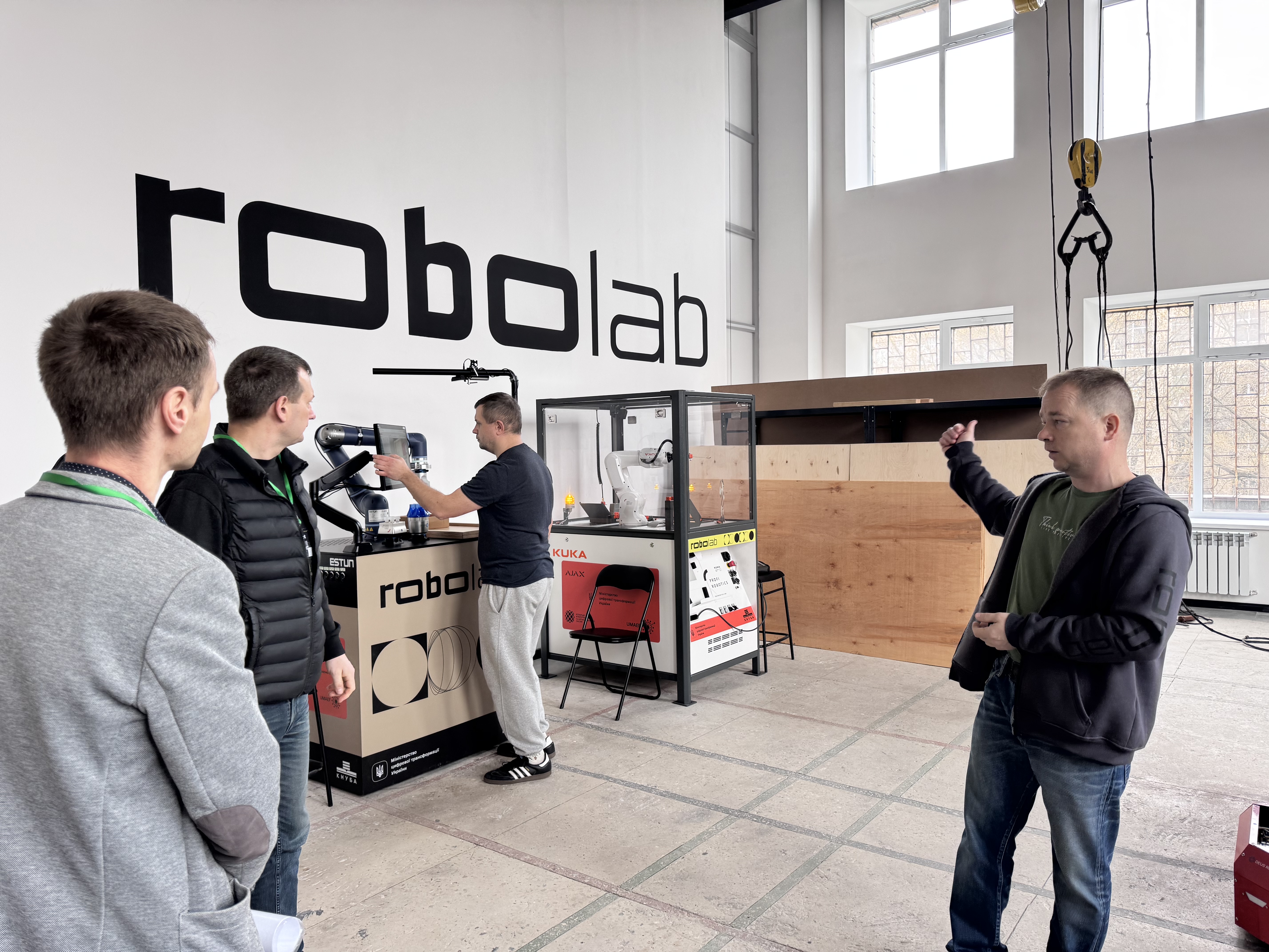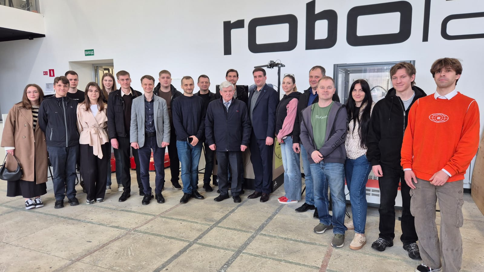 Екскурсію провели Володимир РАШКІВСЬКИЙ, Дмитро МІЩУК та Максим БАЛАКА, які детально ознайомили учасників із діяльністю RoboLab. Лабораторія є сучасним простором для реалізації освітніх і наукових проєктів, підтримки інновацій та впровадження передових технологічних рішень у виробничі процеси. RoboLab складається з кількох функціональних зон, оснащених високотехнологічним обладнанням: промисловими та колаборативними роботами, мобільними логістичними системами, 3D-принтерами, верстатами лазерної різки, комп’ютерною технікою зі спеціалізованим програмним забезпеченням, сучасними сенсорними системами та інструментальним оснащенням.