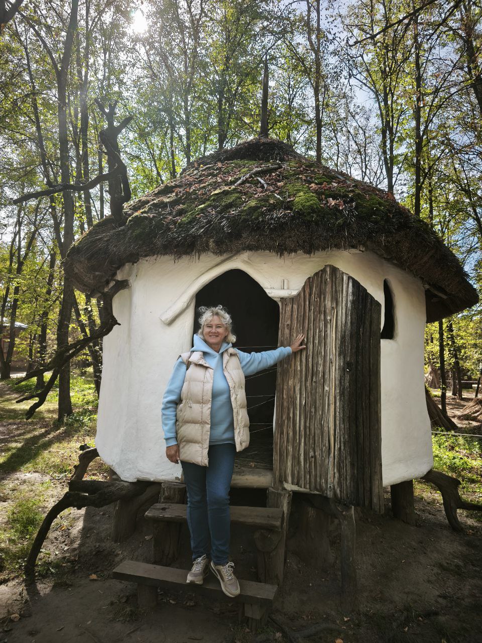 Дуже цікаво було ознайомитись із пам`ятками народної архітектури, яких на території музейного комплексу просто неба (а це близько 25 гектарів) розташовано понад 120. Ми побачили житло ранніх слов’ян, житло наших пращурів X-XIII століть, двори із хатами та господарськими будівлями, металургійні горни I-II ст.н.е., вітряні млини, знаряддя праці, побутові речі, твори народного мистецтва, зібрані в лісостеповій зоні України, старовинну корчму, козацьку залогу (фортифікаційну споруду козаків), Половецьке святилище XII століття, навіть фрагмент стоянки пізнього палеоліту з кістками мамонтів! Все це викликало здивування і захоплення.