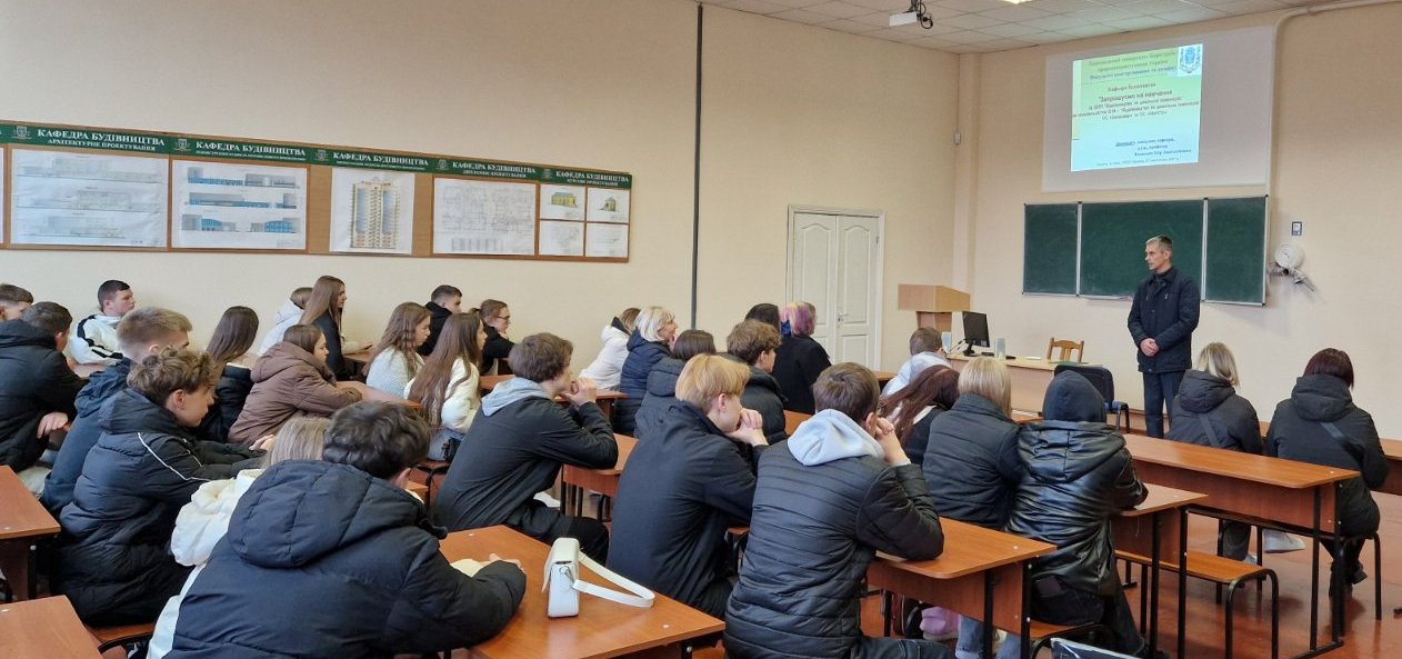 Зустріч розпочалася у лабораторії систем автоматизованого проєктування із вітального слова проф. Яковенка І.А., який окреслив основні напрями навчальної та наукової діяльності кафедри будівництва та спеціальності G19 «Будівництво та цивільна інженерія» в цілому. Наведені дієві аргументи, можливості професійної роботи, посади та місця працевлаштування майбутніх інженерів-будівельників. Акцентувалася увага на тісній співпраці з роботодавцями, стейхолдерами та провідними інститутами України у галузі. Узагальнені умови вступу на спеціальність та широкі можливості професійного розвитку.