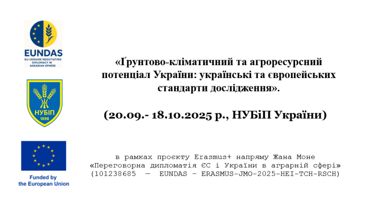 «Ґрунтово-кліматичний та агроресурсний потенціал України: українські та європейських стандарти дослідження». (20.09.-18.10.2025 р., НУБіП України)