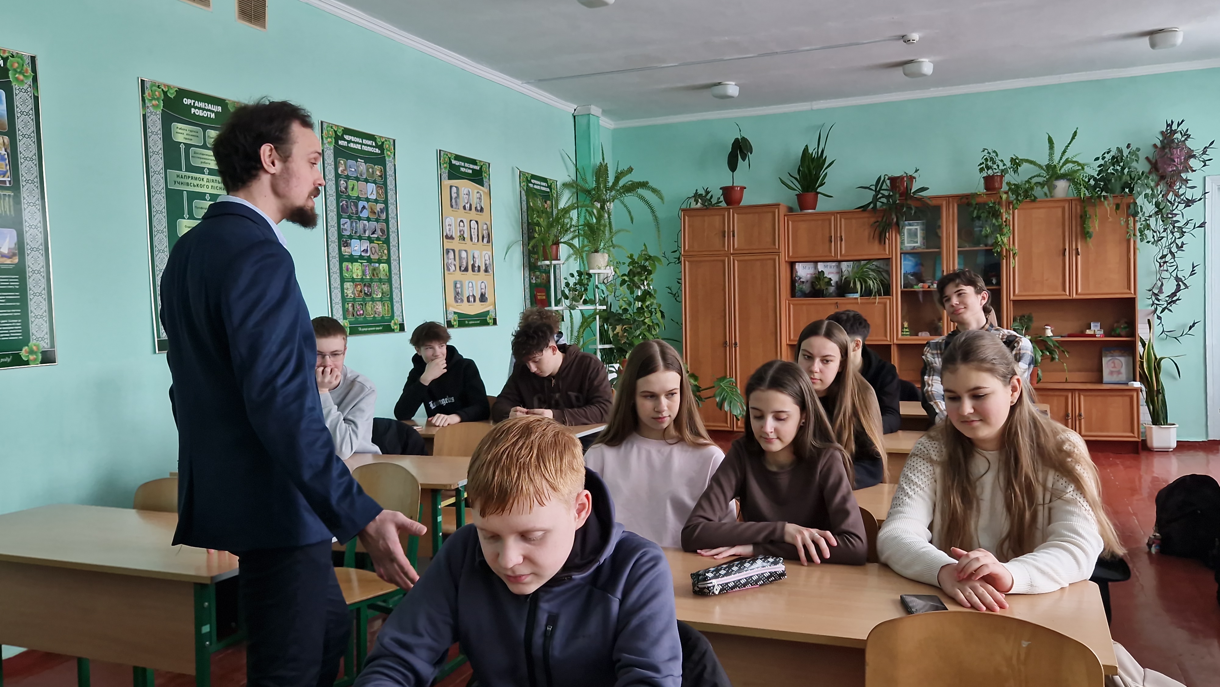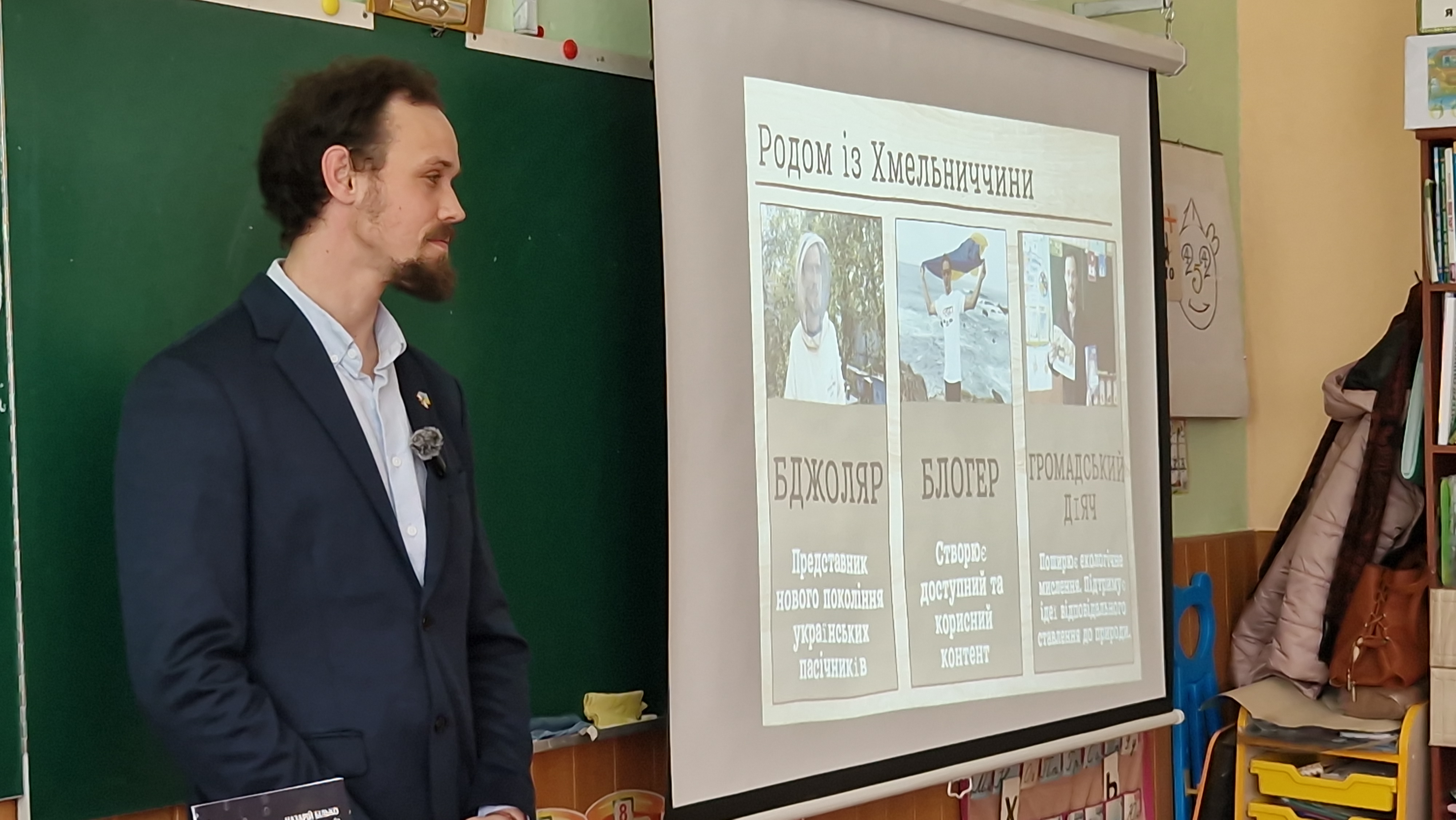 Більш ґрунтовна дискусія відбулася з учнями випускних класів, де зібралася повна класна кімната молодих і перспективних людей. Я розповів їм про можливості навчання в НУБіП України та продемонстрував звернення завідувача кафедри бджільництва, Повознікова Миколи Гавриловича, який акцентував увагу на вільному та щирому виборі майбутньої професії, зокрема розповів про потенціал та особливості здобуття професії у сфері тваринництва.