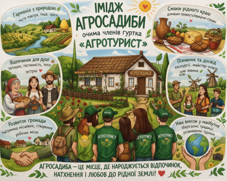 У сучасному агротуризмі важливим фактором успіху агросадиби є її унікальний імідж. Члени гуртка «Агротурист» переконані, що зовнішній вигляд, атмосфера та філософія агросадиби формують перше враження гостей і впливають на бажання повернутися.