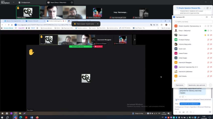 Проведення лекції в онлайн-форматі дало можливість забезпечити інтерактивну взаємодію зі студентами та обговорити практичні аспекти застосування цифрових правових рішень у сучасній юридичній діяльності.