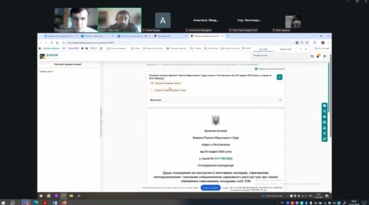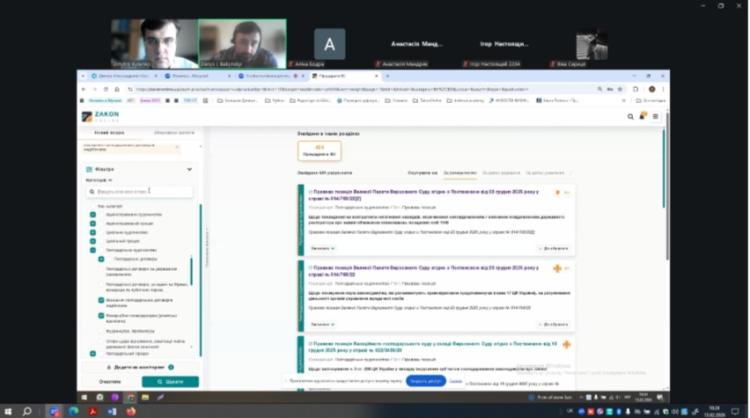 Особливу увагу було приділено практичному використанню системи ZAKONONLINE під час моделювання навчальних судових процесів, підготовки процесуальних документів та аналізу правових кейсів.