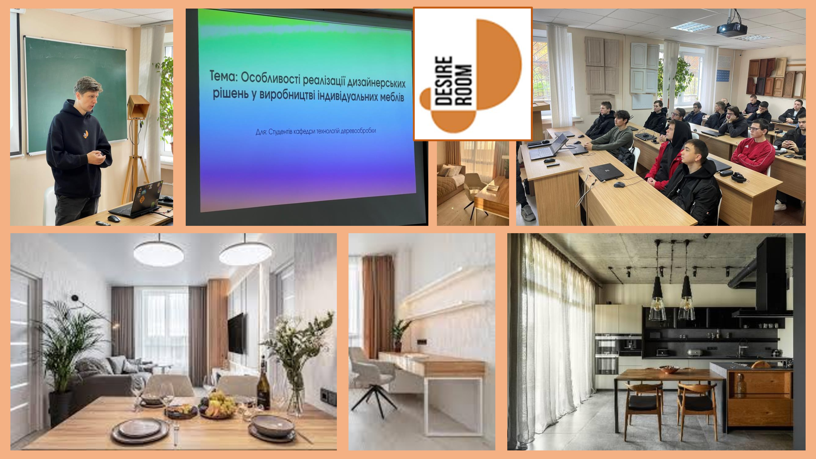 Осінь виявилась сприятливою для професійних зустрічей. Так, у вересні (дисципліна «Конструювання виробів з деревини») відбулась зустріч із компанією Desire Room, що пропонує комплексні рішення для всього житлового простору, включаючи кухні, ванні кімнати, гардеробні, дитячі кімнати та настінні панелі. Сергій Поліщук прочитав практичну та актуальну лекцію на тему «Особливості реалізації дизайнерських рішень у виробництві індивідуальних меблів». Студенти дізналися про виклики та інноваційні підходи до втілення унікальних проєктів у життя.