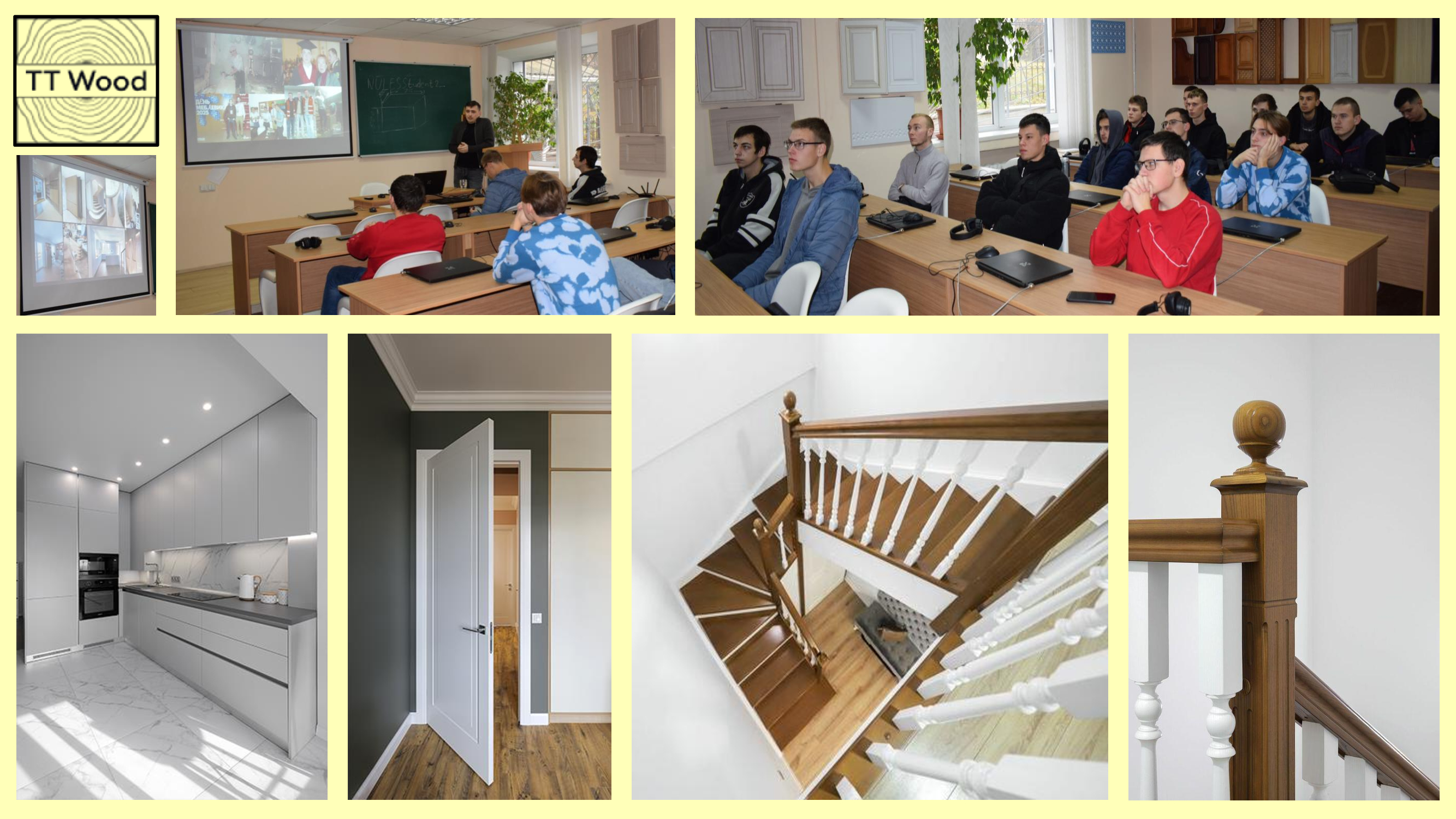 У листопаді студенти познайомились із підприємством TT Wood, що спеціалізується на індивідуальному виготовленні дверей, меблів, сходів та елементів інтер’єру (за цей напрям відповідає дисципліна «Технологія столярних виробів»). Спільно із Денисом Тарасюком обговорення точилося навколо технологічних рішень та особливостей столярного виробництва. Це дало студентам глибоке розуміння тонкощів роботи з деревиною на етапі створення унікальних, високоякісних виробів та особливостями майбутньої професії.
