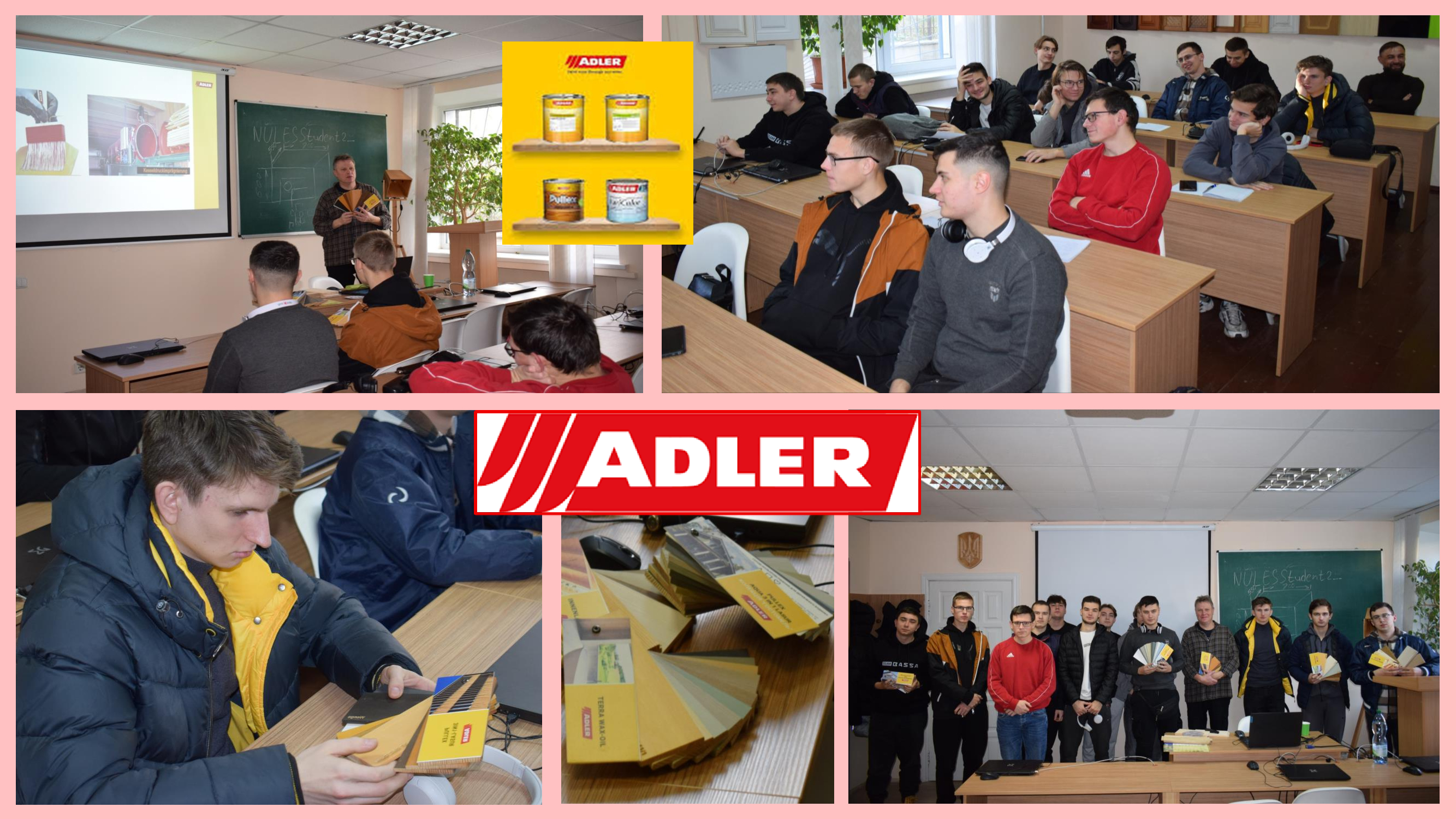 Завершальним у році, але не в освітньому процесі, був візит на кафедру офіційного представника компанії ADLER. Living wood допомагає прикрасити дім, захистити меблі та поверхні в інтер’єрах надовго та підкреслити красу дерев’яних виробів. Сферою їх діяльності є лаки, фарби, воски та системи захисту, що відповідає дисципліні «Технологія захисно-декоративних покриттів». Цього разу Володимир Склярський розповідь направив на фактори впливу на вироби з деревини під час експлуатації, конструктивні способи їх захисту та підбір функціонального забарвлення. В ході обговорення торкнулись підготовки поверхні до опорядження, раціонального вибору деревини для виробів зовнішнього використання. Тем для обговорення багато, та й на практиці хочеться все випробувати, тож співпраця триватиме.