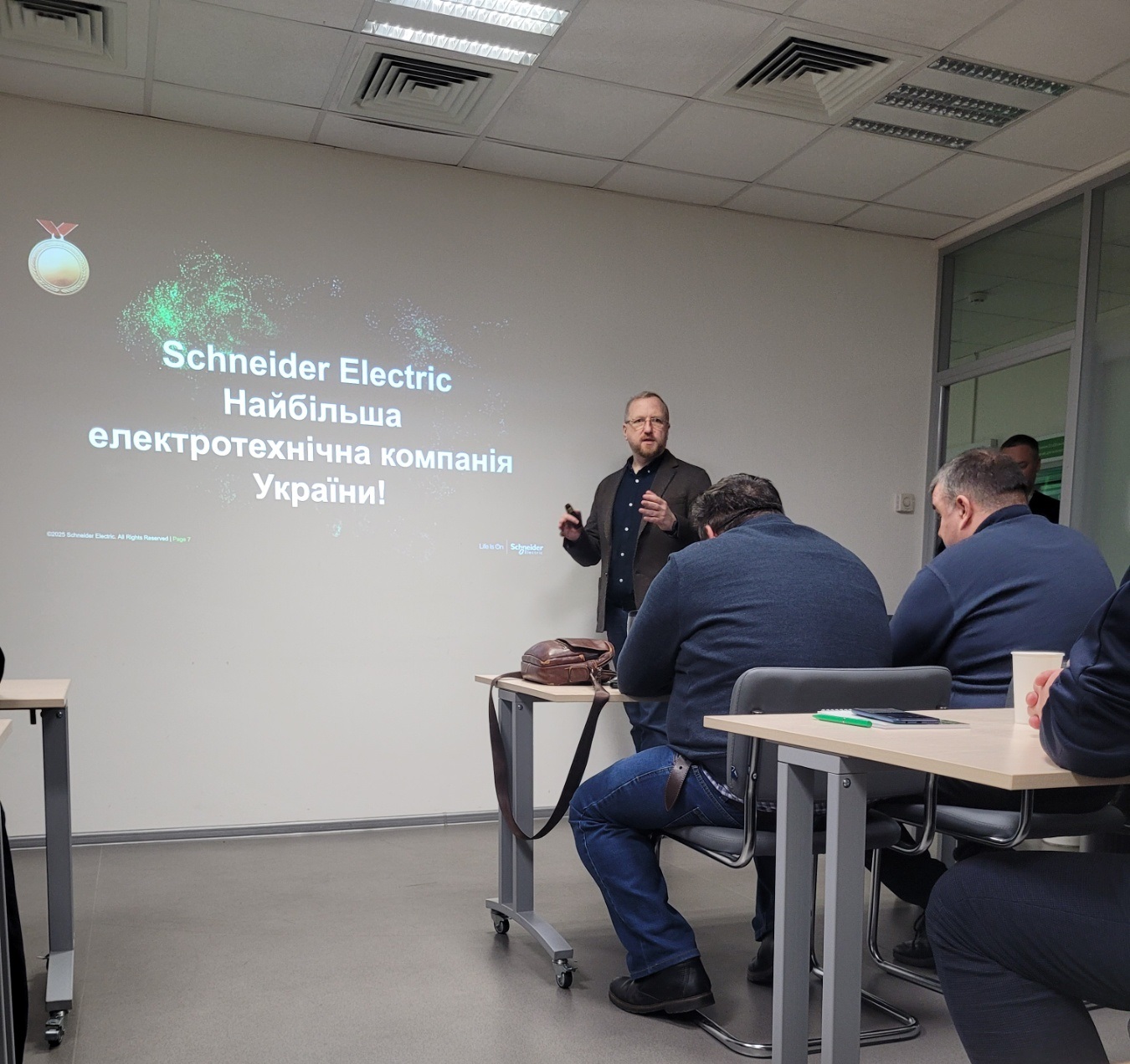 28 листопада відбувся спеціалізований семінар для проєктувальників, організований компанією Schneider Electric, що є одним зі світових лідерів у сфері енергоефективних рішень та промислової автоматизації. Захід зібрав фахівців, викладачів та студентів технічних спеціальностей і став важливою платформою для ознайомлення з сучасними підходами до проєктування інтелектуальних систем електропостачання, автоматизації та роботизації виробничих процесів.