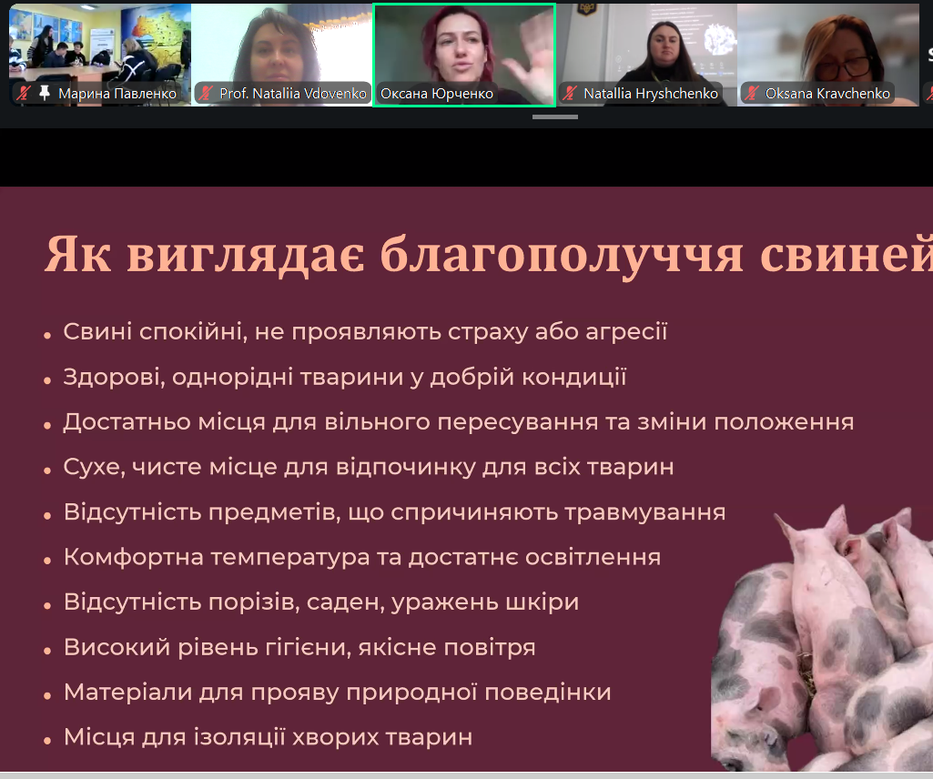 У цьому контексті основним стало обговорення європейських підходів до забезпечення благополуччя свиней, які охоплюють умови утримання, ветеринарний супровід, раціональну годівлю та мінімізацію стресових факторів.