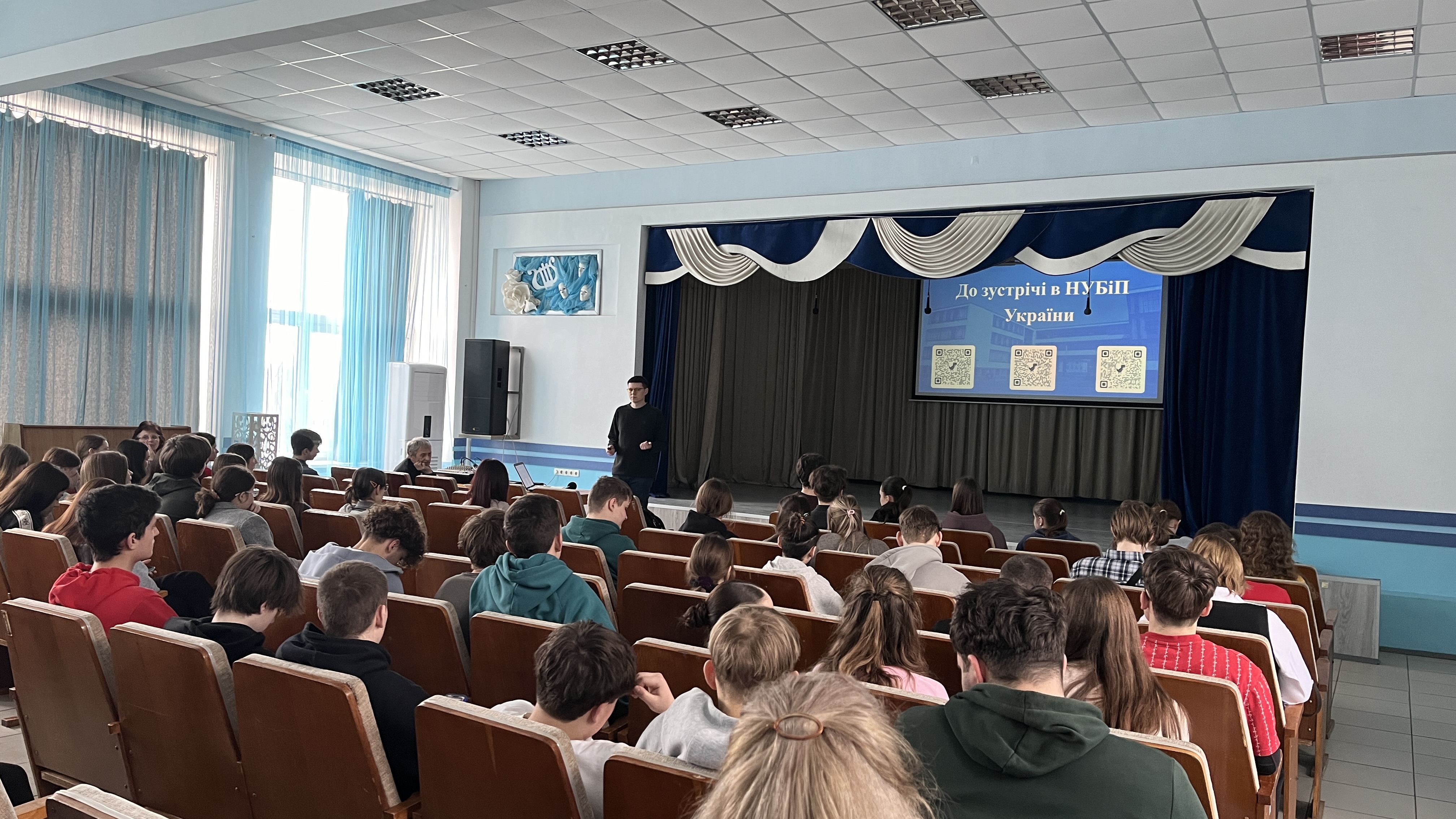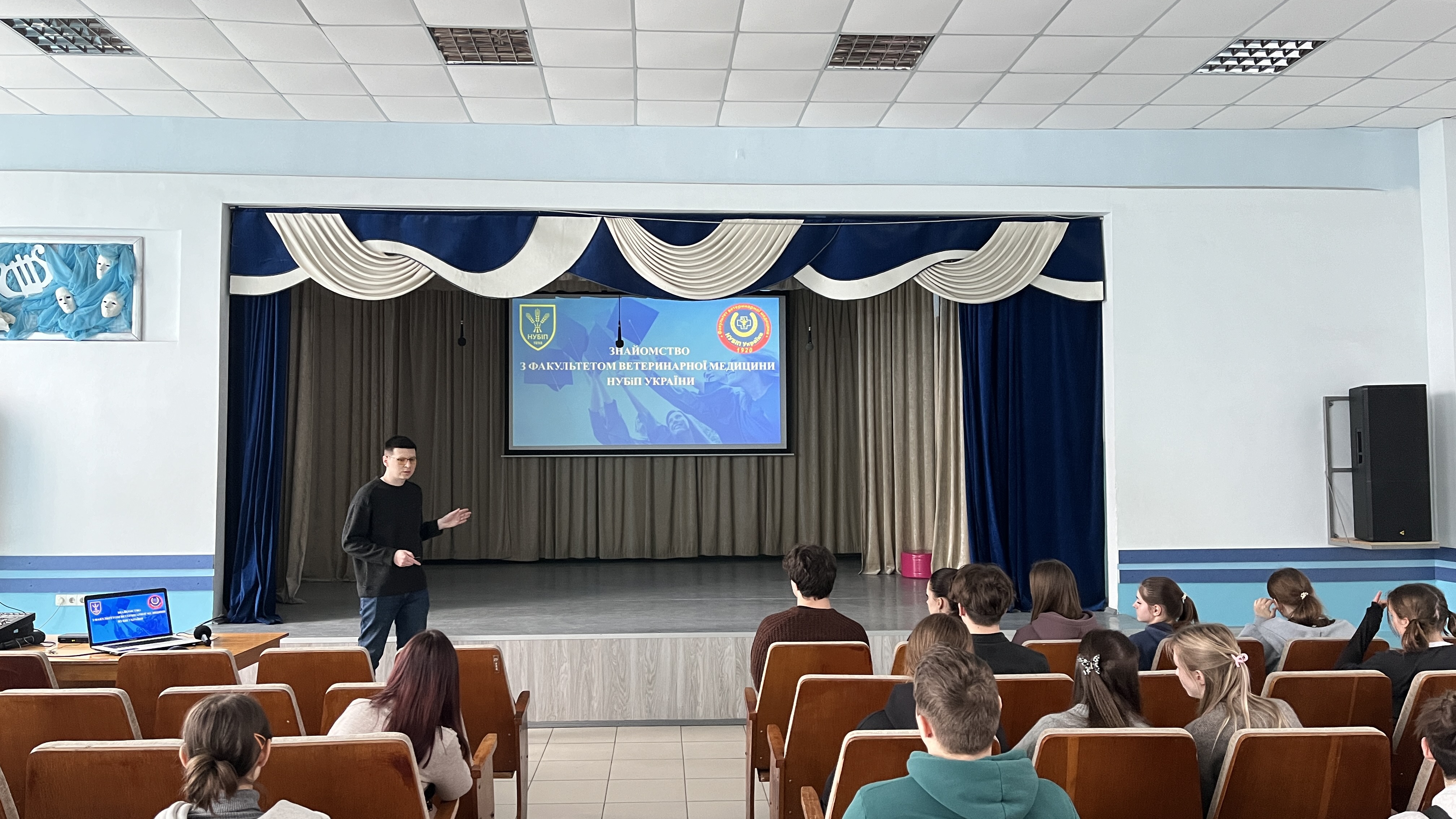 З метою залучення нових абітурієнтів до вступу в Національний університет біоресурсів і природокористування України асистентом кафедри ветеринарної хірургії імені академіка І.О. Поваженка Грищуком Ігорем була проведена профорієнтаційна робота серед учнів випускного класу у Академічному ліцеї «Європейський» Лубенської міської ради Лубенського району Полтавської області.