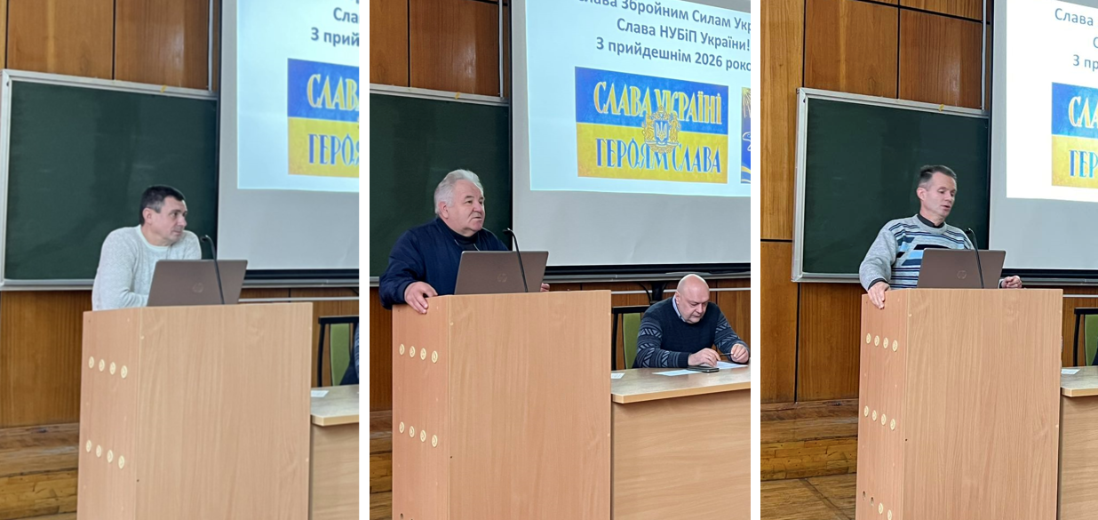 В обговоренні звіту також виступили завідувач кафедри охорони праці та біотехнічних систем у тваринництві професор Василь ХМЕЛЬОВСЬКИЙ, завідувач кафедри тракторів і автомобілів професор Євген КАЛІНІН, доцент кафедри сільськогосподарських машин і системотехніки ім. акад. П.М. Василенка Михайло ВОЛЯНСЬКИЙ та доцент кафедри транспортних технологій і засобів у АПК Олександр ДЬОМІН.