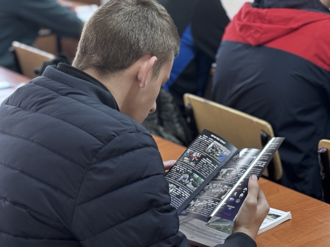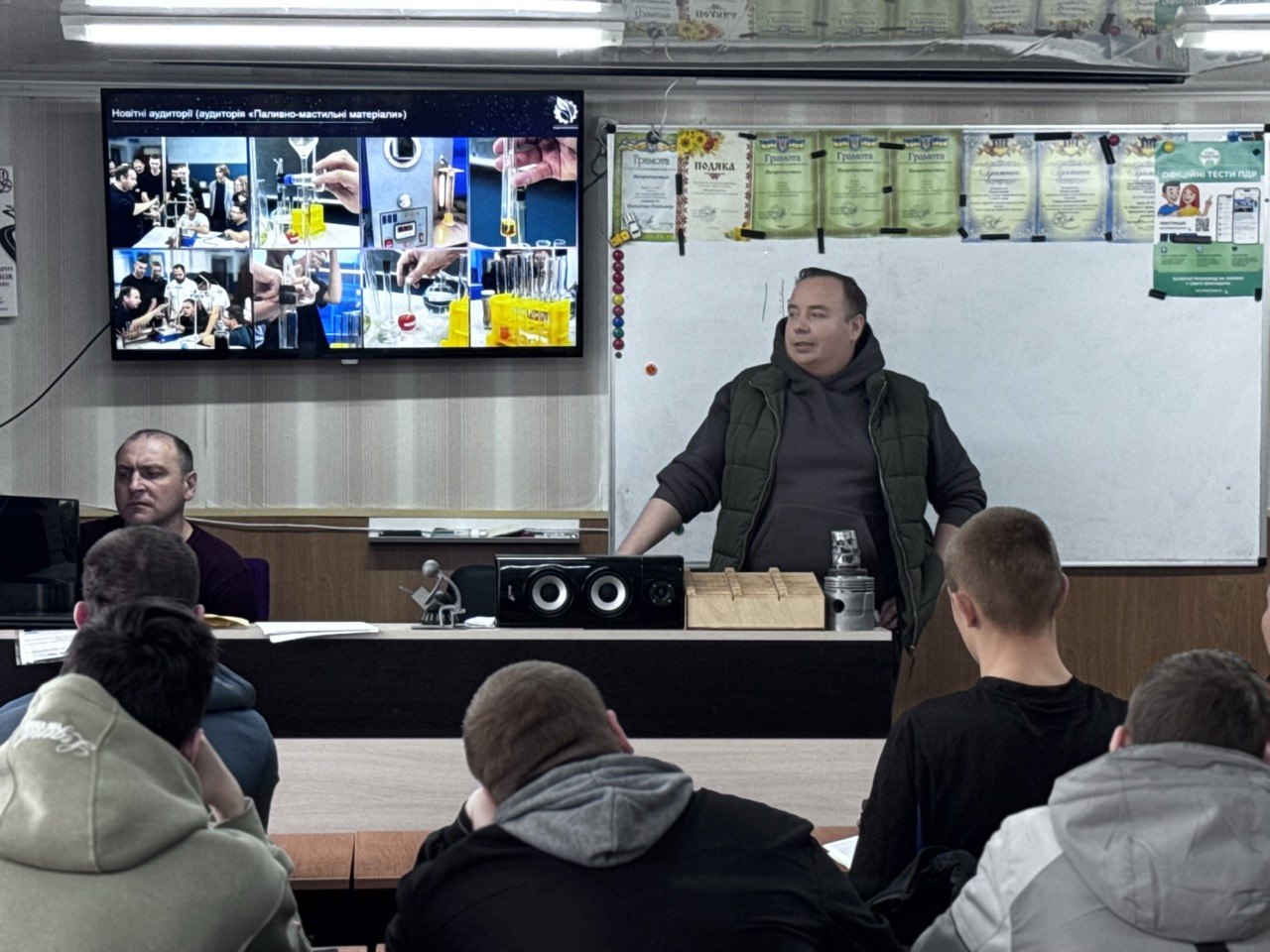 Продовженням візиту стала зустріч зі здобувачами освіти коледжу, під час якої було презентовано спеціальність J8 «Автомобільний транспорт», а також окреслено ключові переваги навчання в Національному університеті біоресурсів і природокористування України. Завідувач кафедри Євген КАЛІНІН представив комплексну характеристику освітнього середовища, зосередивши увагу на сучасній матеріально-технічній базі, інноваційних підходах до навчання та можливостях професійної реалізації випускників.