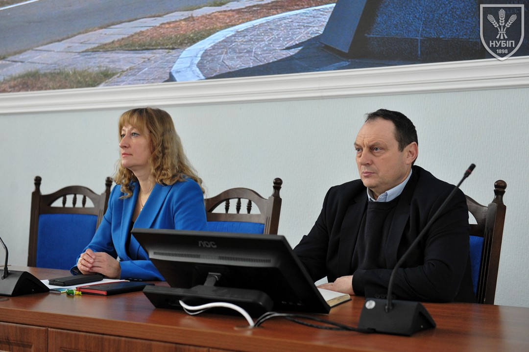 Президія круглого столу - ректор, д.е.н., професор, член-кореспондент НААН України, відмінник аграрної освіти України, заслужений працівник освіти України Вадим ТКАЧУК, декан факультету захисту рослин, біотехнологій та екології, д.с.-г.наук, професор Юлія КОЛОМІЄЦЬ, декан агробіологічного факультету к.с.-г.наук, доцент Володимир ЗАВГОРОДНІЙ, к.с.-г.наук, доцент кафедри екології агросфери та екологічного контролю Світлана ПАЛАМАРЧУК.