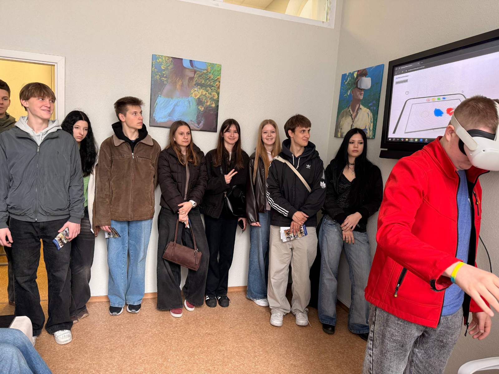 Майбутні випускники мали нагоду відвідати лабораторію інформаційно-комунікаційних технологій в освіті. Студент спеціальності «Професійна освіта» Василь Іванович Юрійчук продемонстрував можливості сенсорної панелі та автономних VR-окулярів Oculus Quest 2, що активно застосовуються у навчальному процесі. Учні із захопленням випробували окуляри віртуальної реальності, і кожному вони подарували справжні, незабутні враження.