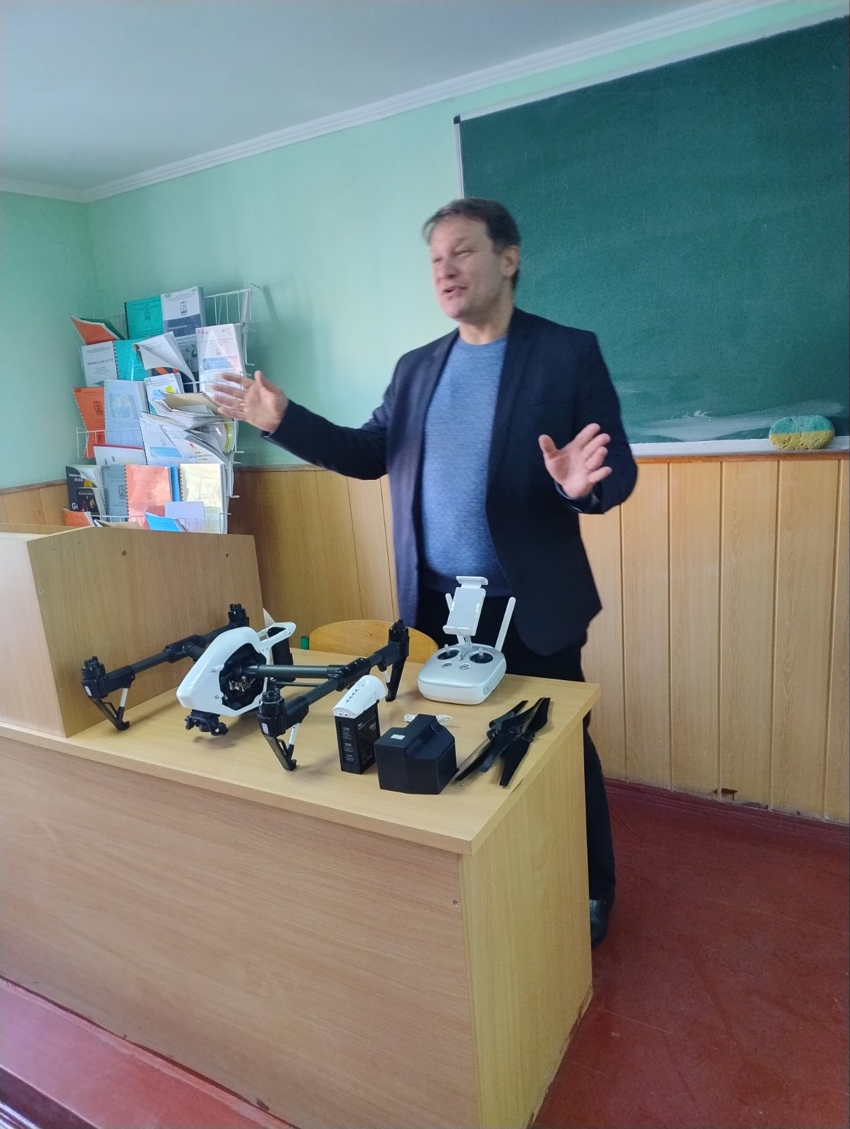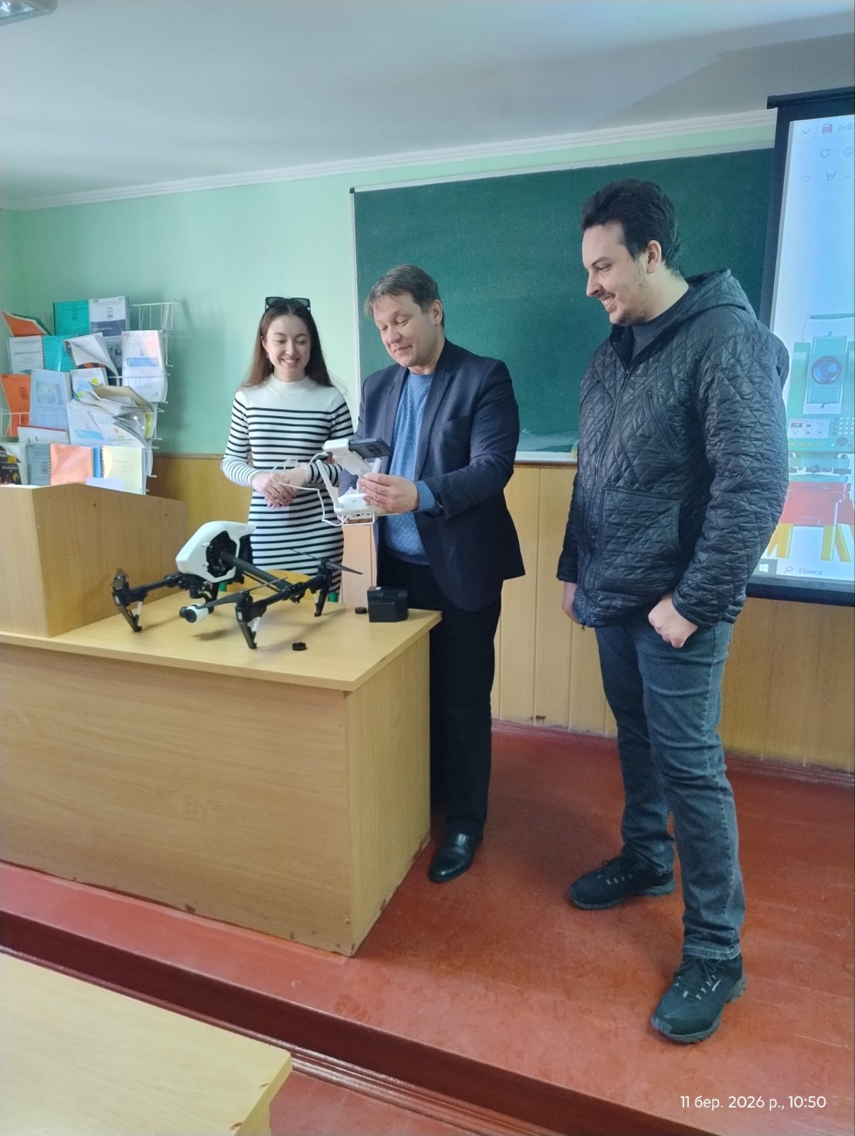 Цікавою частиною зустрічі став практичний майстер-клас із використання безпілотних літальних апаратів у геодезичних роботах, який провів Євген Бутенко. Студенти мали змогу ознайомитися з можливостями аерофотознімання територій за допомогою дрона DJI Inspire 1, що викликало значну зацікавленість аудиторії.