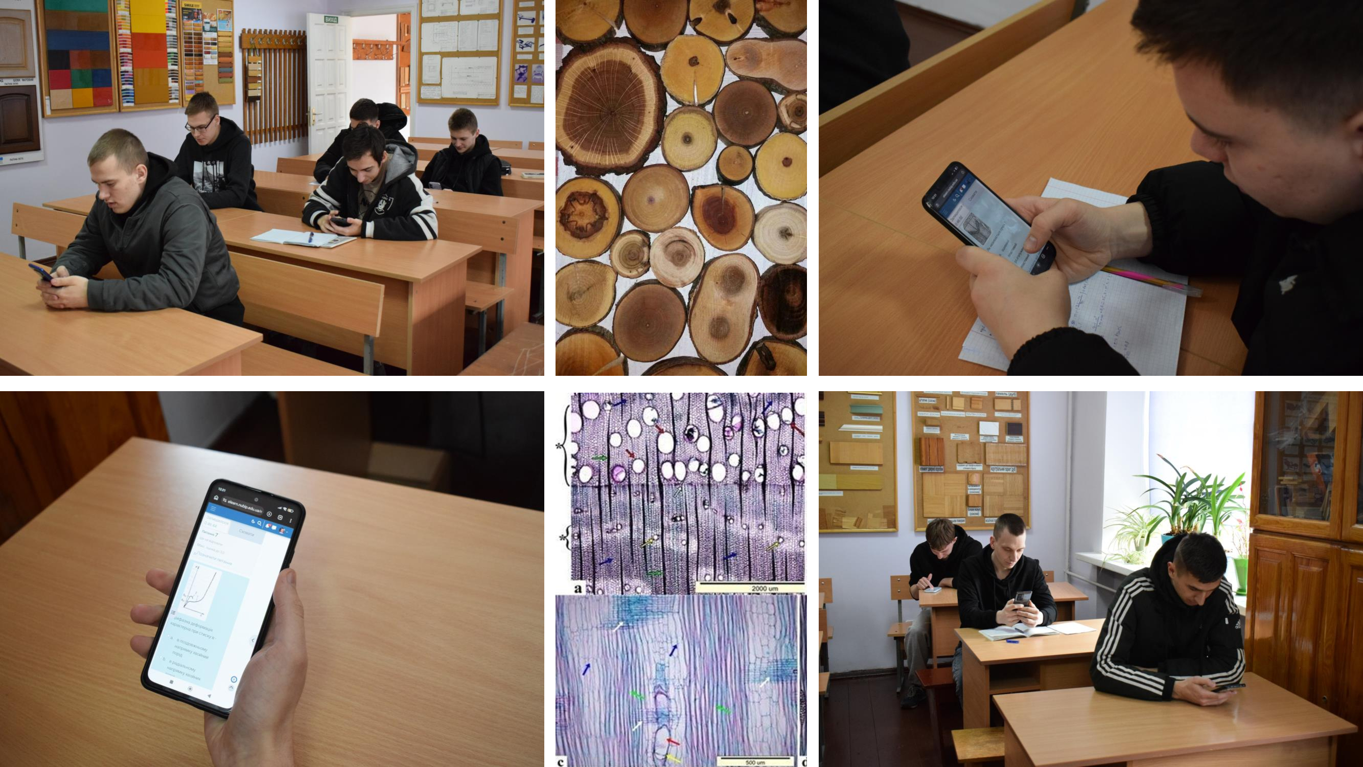 • «Деревинознавство» – знати деревину «на дотик» та «на погляд» – це мистецтво. Особливу увагу було приділено візуальним завданням: студенти ідентифікували анатомічну будову за зображеннями макро- та мікроструктури (судини, річні шари, серцевинні промені). Такий підхід дозволив не лише перевірити базові знання, а й оцінити глибину розуміння матеріалу, що особливо важливо після періоду дистанційного навчання.