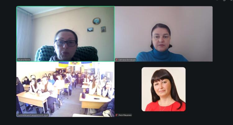 21 січня 2026 року викладачі гуманітарно-педагогічного факультету НУБіП України провели онлайн-зустріч з одинадцятикласниками Гребінківського академічного ліцею. Кафедру педагогіки представляли професор Оксана Васюк та доценти Світлана Виговська і Леся Маценко.