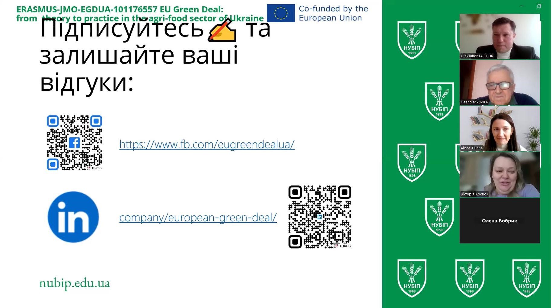 Альона ТЮРІНА запросила учасників долучитися до сторінки проєкту Жана Моне «Європейський зелений курс: від теорії до практики в агропродовольчому секторі України» на веб-сайті НУБіП України і соціальних мережах (Facebook і LinkedIn).
