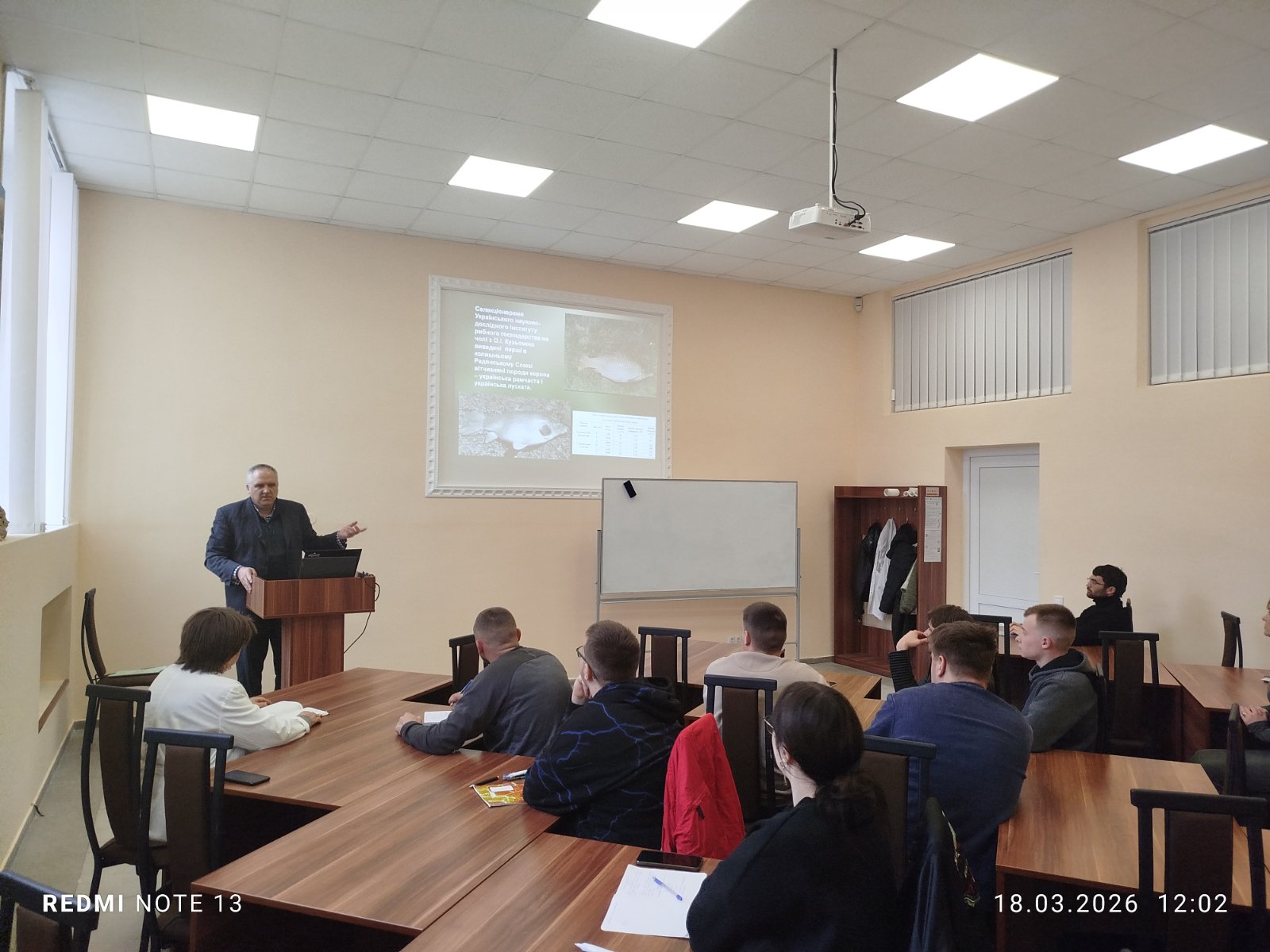 18 березня 2026 року на кафедрі аквакультури згідно графіка проведення відкритих занять відбулася відкрита лекція для здобувачів вищої освіти ОС «Бакалавр» спеціальності 207 «Водні біоресурси та аквакультура» з навчальної дисципліни «Розведення і селекція риб». Тема лекції: «Селекційні досягнення у коропівництві». Лекцію провідив доцент кафедри аквакультури Вадим Марценюк.