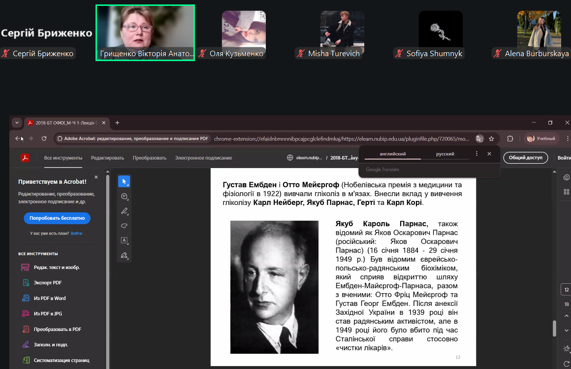 На перших парах з вивчення нової дисципліни було розглянуто низку організаційних питань, основні вимоги з підготовки до занять, особливості самостійної роботи над завданнями та стратегію в навчанні на поточний семестр. Оскільки в окремих групах студенти вперше розпочали навчання на кафедрі біохімії ім. акад. М.Ф. Гулого, проведено їх ознайомлення з її історією, науковими школами і студентськими гуртками, а також співробітниками, які працювали в різні часи та нині забезпечують навчальний процес. Здобувачам вищої освіти запропоновано в перспективі продовжити навчання в аспірантурі та у подальшому в докторантурі.