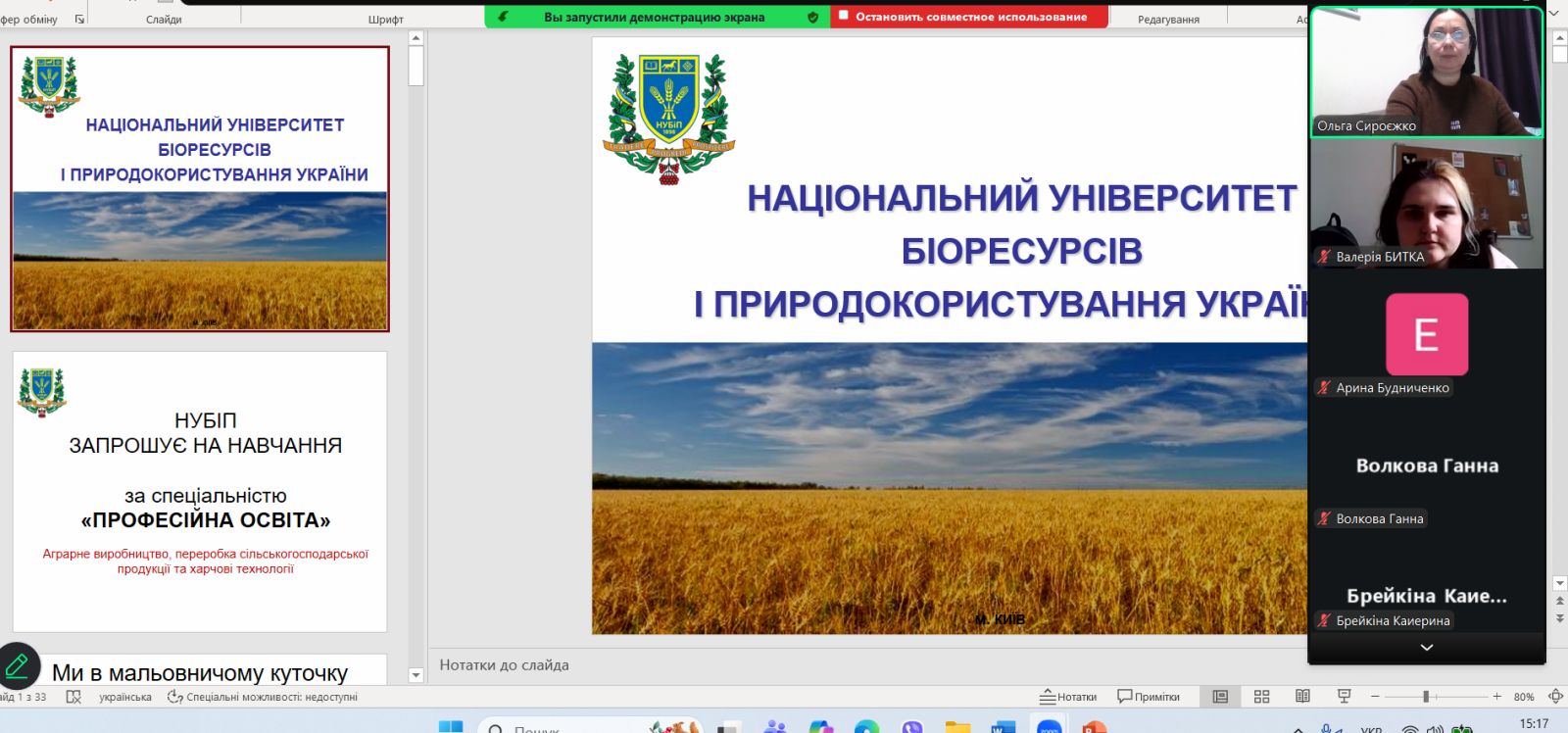 Студенти коледжів уважно слухали інформацію і дивилися презентацію щодо запрошення на навчання до Національного університету біоресурсів і природокористування України, а саме за спеціальністю «Професійна освіта». І дуже приємним було те, що після презентації серед студентів відбулося дуже жваве обговорення, вони задавали питання, цікавилися питаннями і організації студентського дозвілля, і умовами студентського кампусу, і вибірковими дисциплінами, що є свідченням небайдужості до вибору своєї професії.