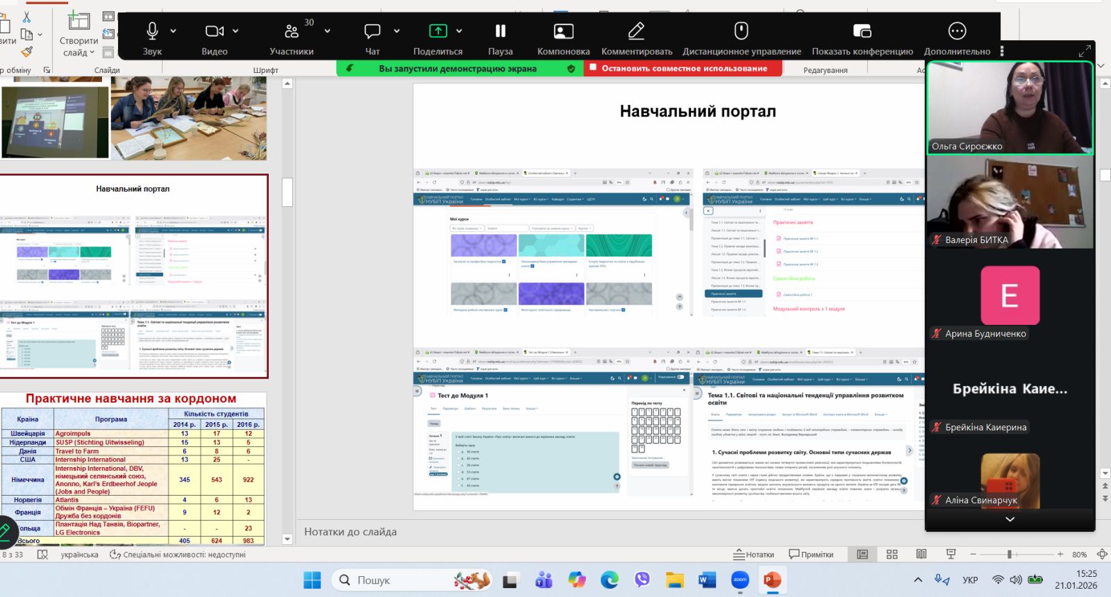 Володимира Худякова (Миколаївський політехнічний фаховий коледж) хвилювало питання, як в університеті організовано навчання в умовах блекаутів. Було дано роз’яснення щодо навчального електронного порталу Elearn, де розміщено навчальні матеріали з усіх дисциплін навчального плану.