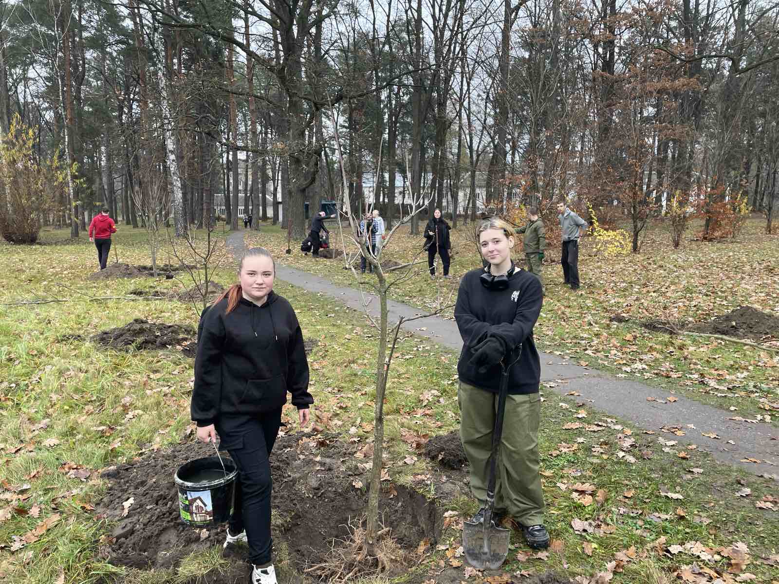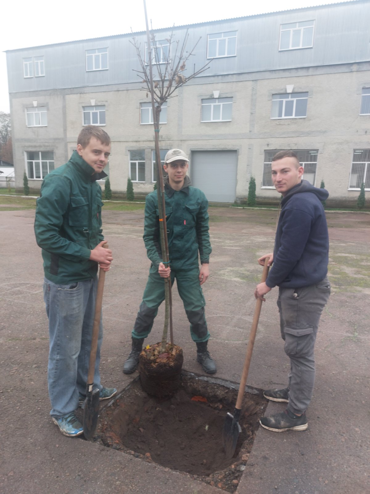 А студенти Боярського фахового коледжу НУБіП України спеціальності «Лісове господарство» разом з директором Сергієм КРОПИВКО та викладачем Романом ТАСАЖ у рамках акції «Зелена країна» на території коледжу висадили алею Катальп та Дуб-солітер.