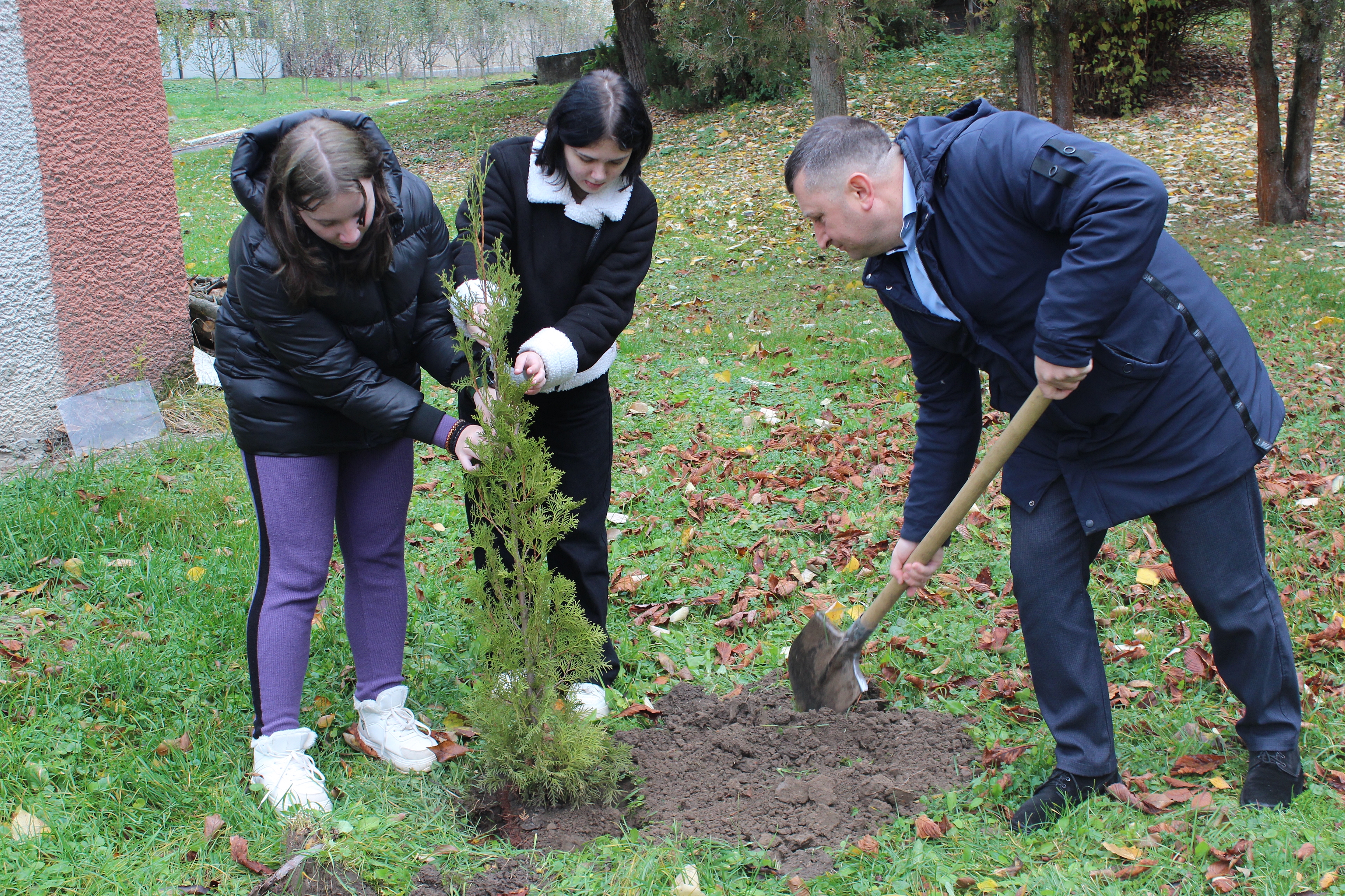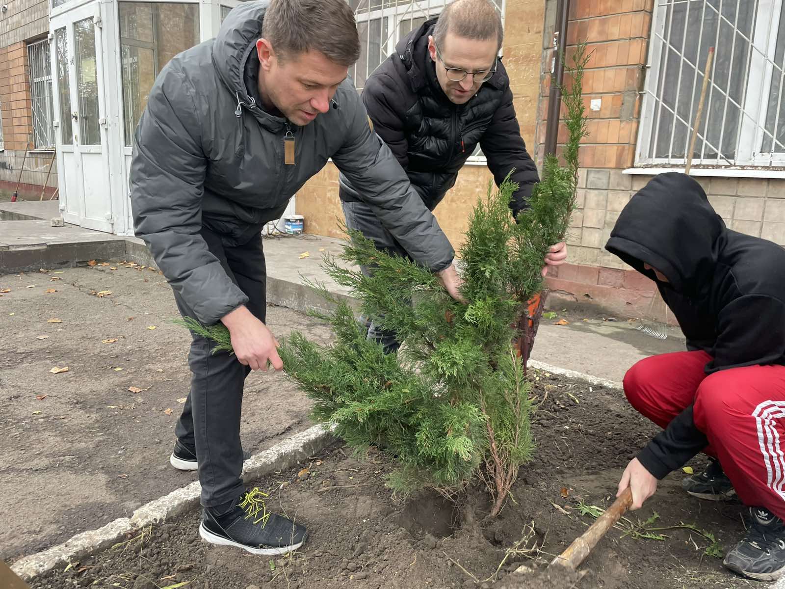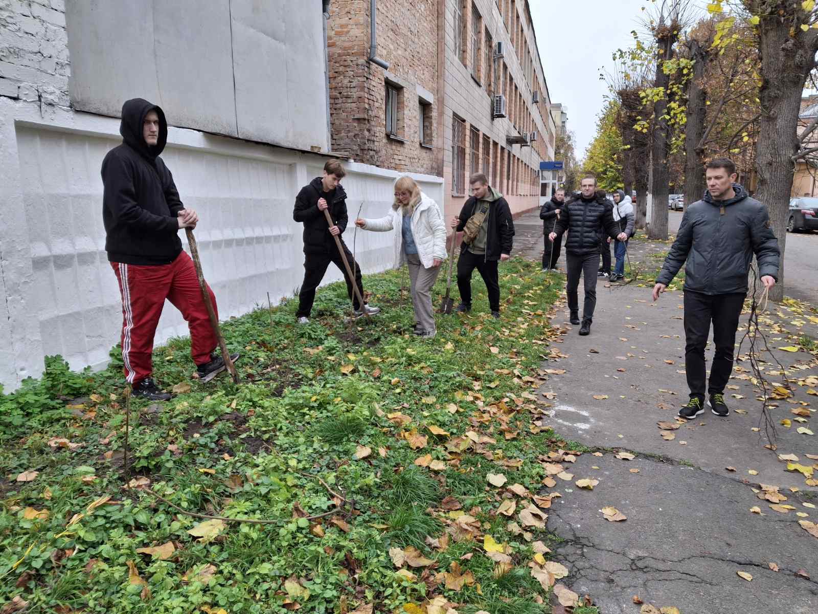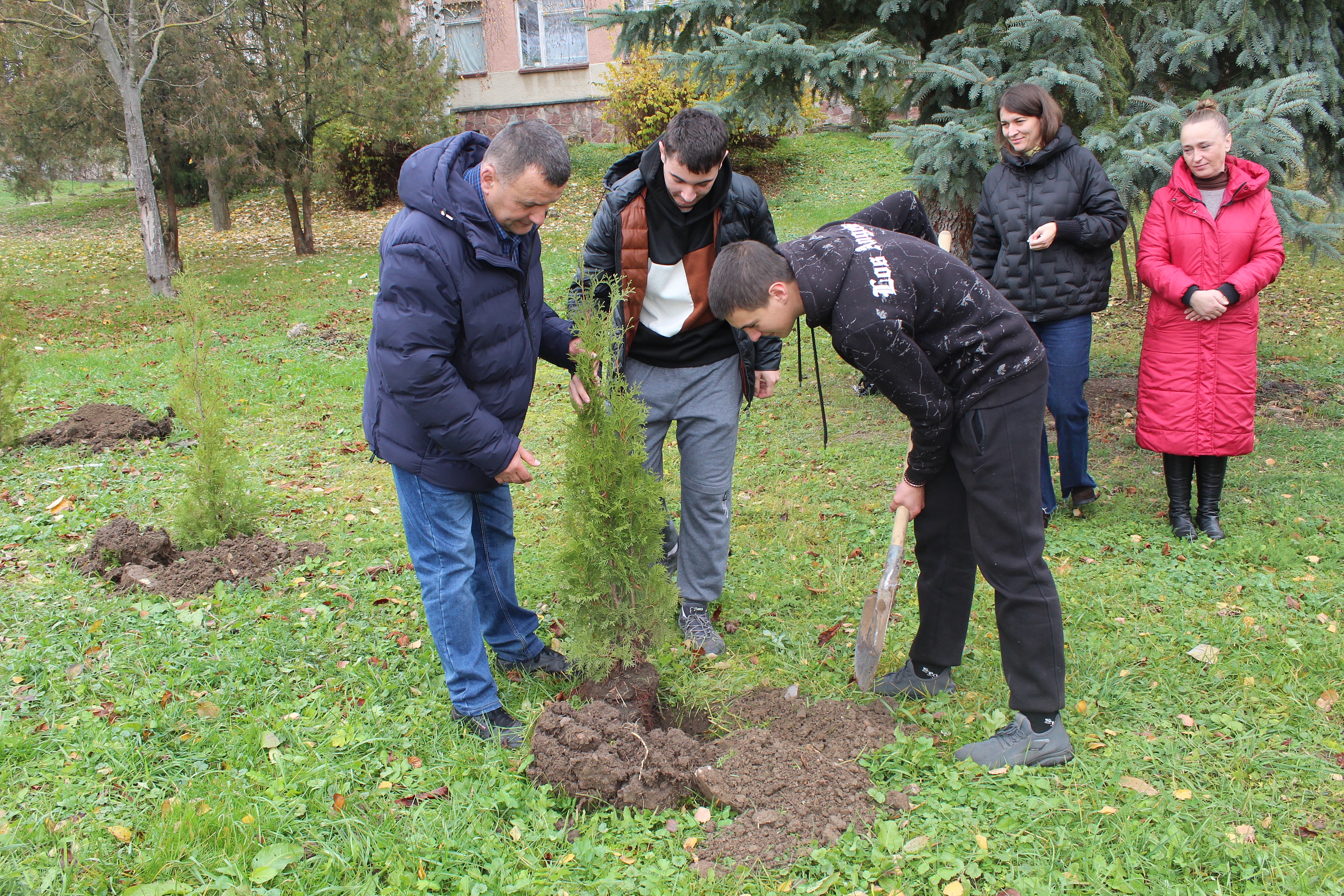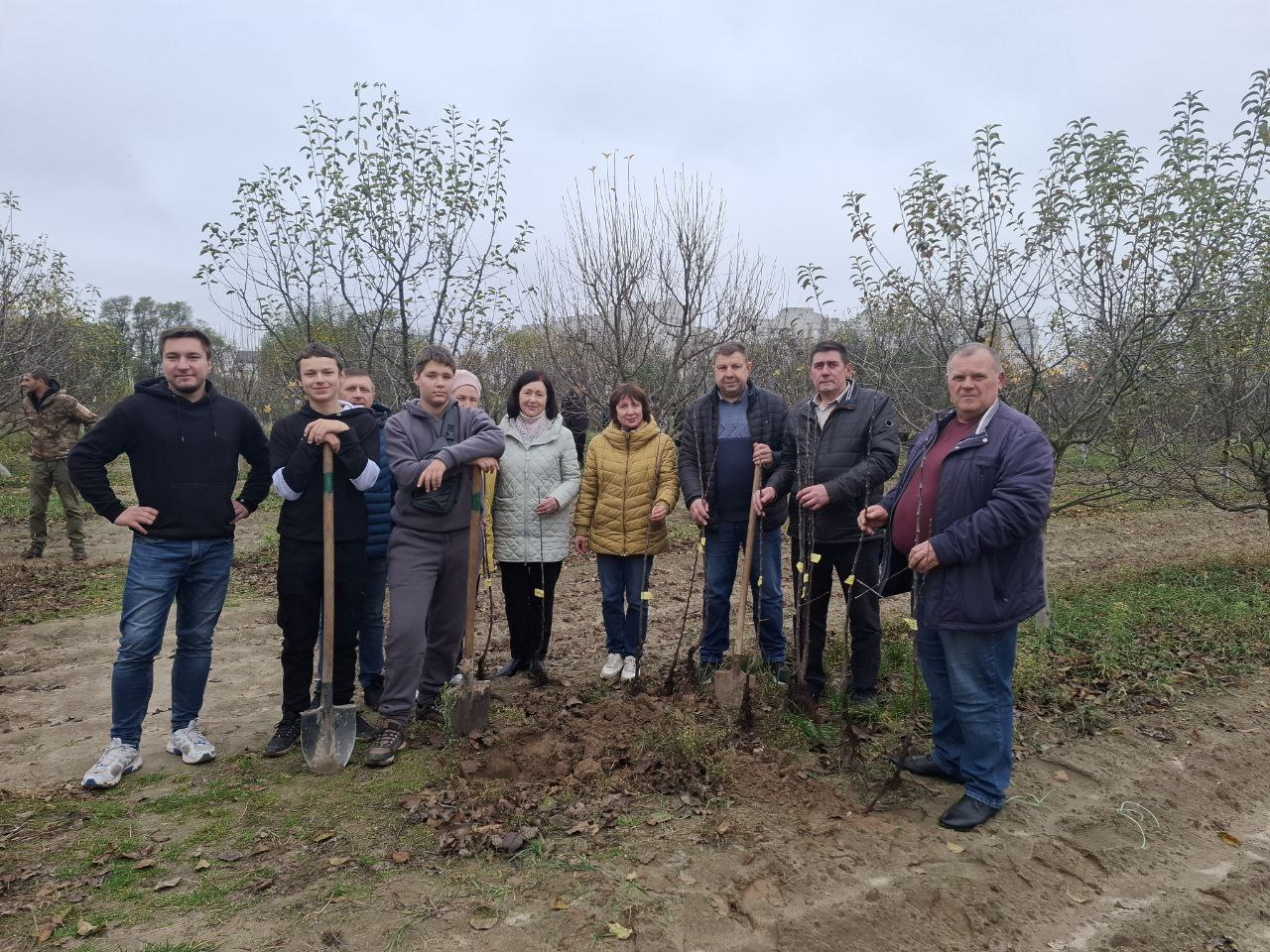 У Ніжинському агротехнічному інституті директор Василь ЛУКАЧ разом з викладачами та студентами в надскладних безпекових умовах також висадили дерева на території.