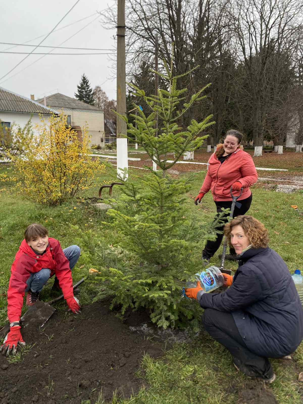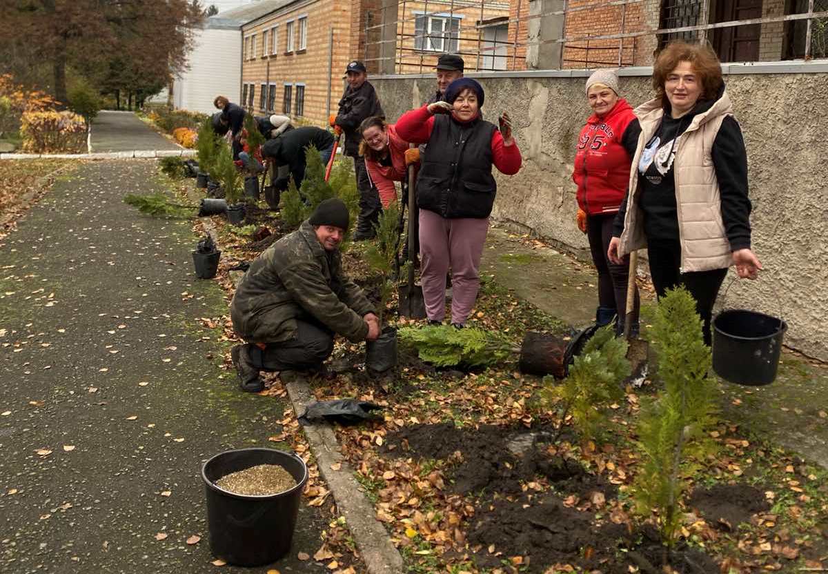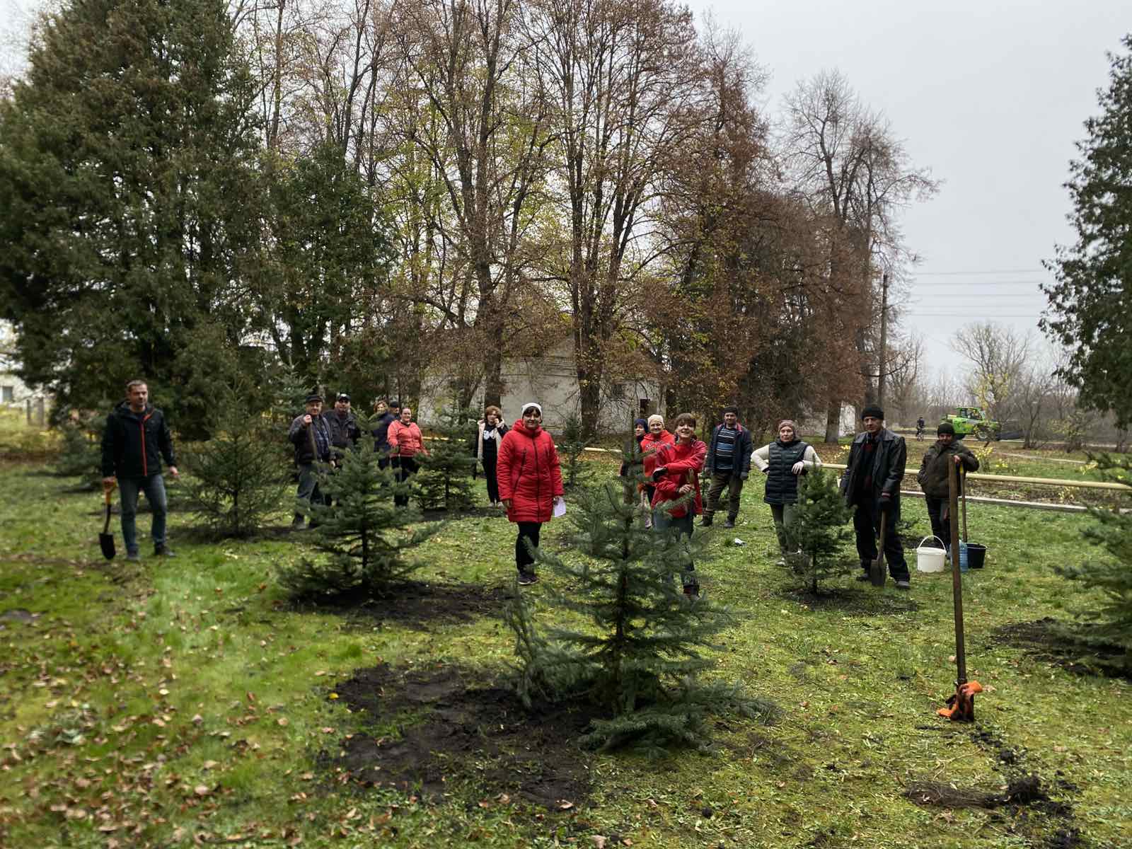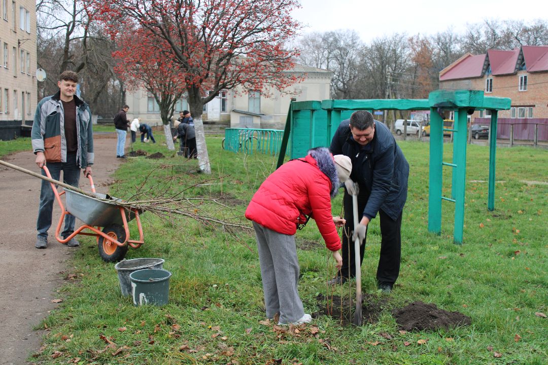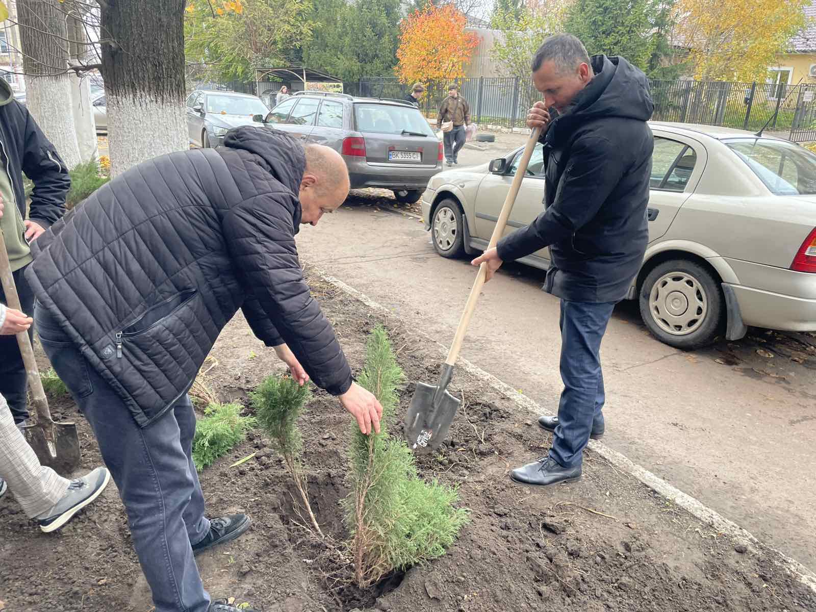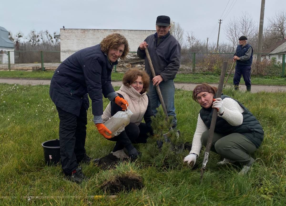 У Ніжинському агротехнічному інституті директор Василь ЛУКАЧ разом з викладачами та студентами в надскладних безпекових умовах також висадили дерева на території.