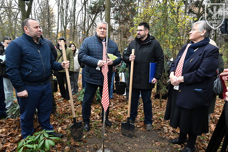 До акції доєдналася і наша високоповажна гостя — Надзвичайний і Повноважний Посол Республіки Хорватія в Україні пані Аніца ДЖАМИЧ. Вона привезла до ботсаду саджанець липи. Це — клон липи оригінальної, яка зростає у Хорватії з ХVI століття. Цей вибір не випадковий, зазначила пані посол: липа — дерево слов’янське, і його висадка символізуватиме дружбу між хорватським і українським народами.