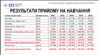 Доповідач відзначив, що ЗВО під час вступної кампанії 2025 року спрацювали на високому рівні щодо конверсії вступників – це показник ефективності процесу вступу, що відображає відсоток потенційних абітурієнтів, які перетворились на реальних студентів, тобто перейшли від зацікавленості (подання документів) до зарахування. Вимірюється як співвідношення кількості зарахованих до загальної кількості вступників, і є критичною метрикою для оцінки роботи приймальної комісії та привабливості освітньої програми. Також він подякував ЗВО щодо врегулювання питання вступу абітурієнтів чоловічої статі 25+.