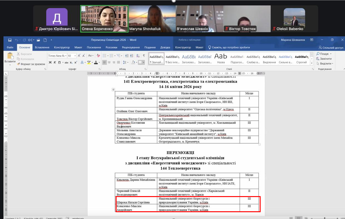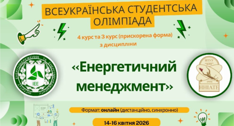 14-15 квітня 2026 року відбулась Всеукраїнська студентська олімпіада з дисципліни «Енергетичний менеджмент». Кафедри електропостачання та теплової і альтернативної енергетики Національного технічного університету України «Київський політехнічний інститут імені Ігоря Сікорського» проводять такий захід вже вдвадцяте. Четвертий раз в ньому беруть участь студенти ННІ енергетики, автоматики і енергозбереження НУБіП України, які навчаються за ОП «Теплоенергетика».