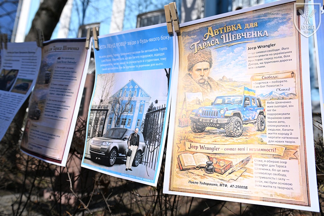На Алеї слави панувала особлива атмосфера єднання, любові та шани до української культури. Імпровізовані виставки факультетів та ННІ, прикрашені мереживом вишитих обрусів, представили різноманітні видання «Кобзаря», тематичні альбоми, картини, статуетки та інші мистецькі речі, що відображають безсмертну спадщину поета. Родзинкою тут став творчий проєкт «Автівка для Тараса», який вперше за всі роки вшанування пам'яті Кобзаря був організований студентами механіко-технологічного факультету за ініціативи народної мистецької студії «Голосіївська палітра». І , як звичайно, Наукова бібліотека університету приготувала чудову виставку різноманітних видань «Кобзаря» з фонду книгозбірні.