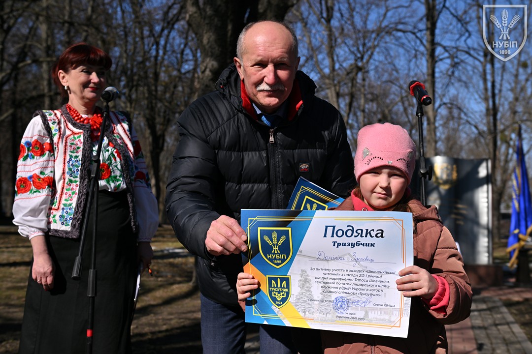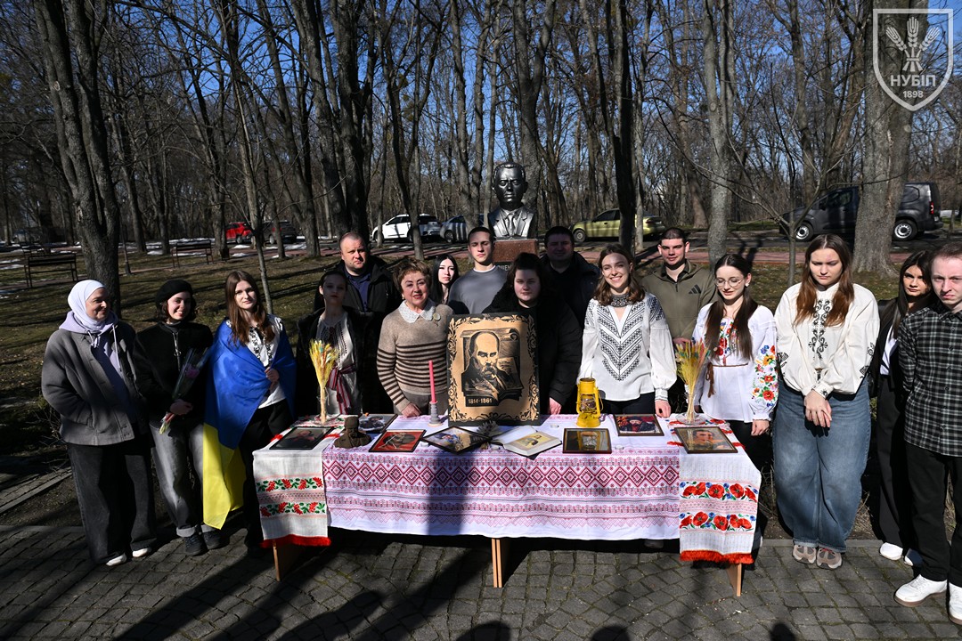 Академічна спільнота Національного університету біоресурсів і природокористування України традиційно долучилася до відзначення дня народження великого українського поета, художника та мислителя — Тараса ШЕВЧЕНКА. Цьогоріч на Алеї слави університету вже вкотре відбулися традиційні шевченківські читання, присвячені 212-й річниці від дня народження Кобзаря.