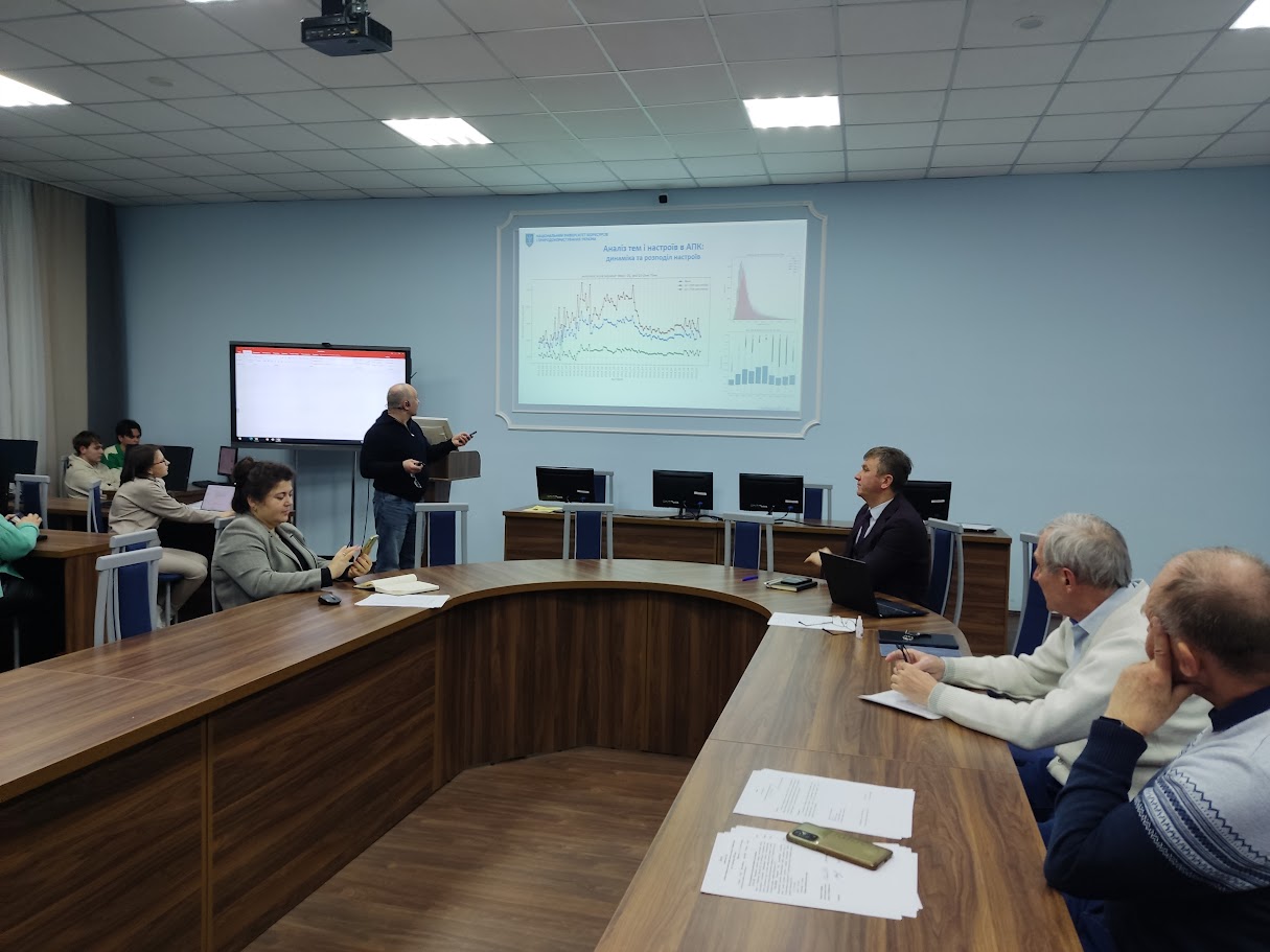 На засіданні вченої ради факультету інформаційних технологій професор кафедри комп'ютерних наук Руденський Р.А. представив наукову доповідь на тему "ШІ для аналізу публічних дискусій" за результатами прикладного дослідження "Використання технологій штучного інтелекту в публічному управлінні, зокрема в умовах воєнного стану".